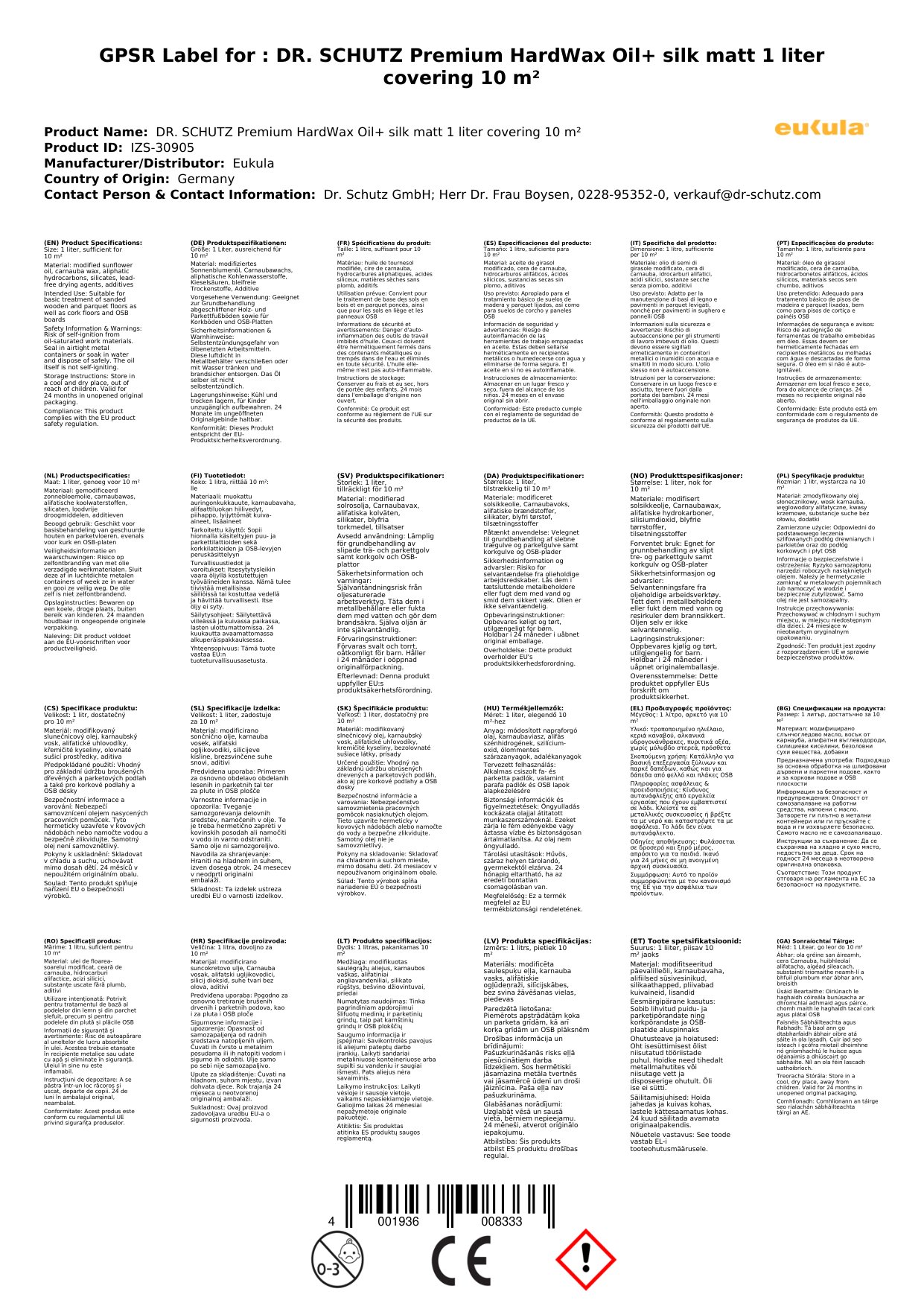 Cuir ceist chun níos mó a fhoghlaim faoin táirgeOla chrua-chéarach préimhe, Ola adhmaid seidenmatt, 1 Lítear, Críochnú adhmaid seidenmatt