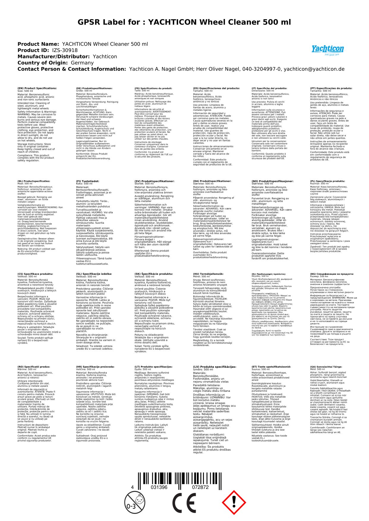 Tá an Glantóir Rothaí Carranna seo deartha go sonrach chun rothaí carranna a ghlanadh go héifeachtach. Le toirt 500ml, is leor é chun rothaí iolracha a ghlanadh. Tá sé éasca le húsáid agus sábháilte do rothaí alúmanaim. Cén fáth go bhfuil sé seo tábhachtach duit: Coinníonn tú do rothaí ag breathnú nua agus slachtmhar gan damáiste a dhéanamh dóibh.