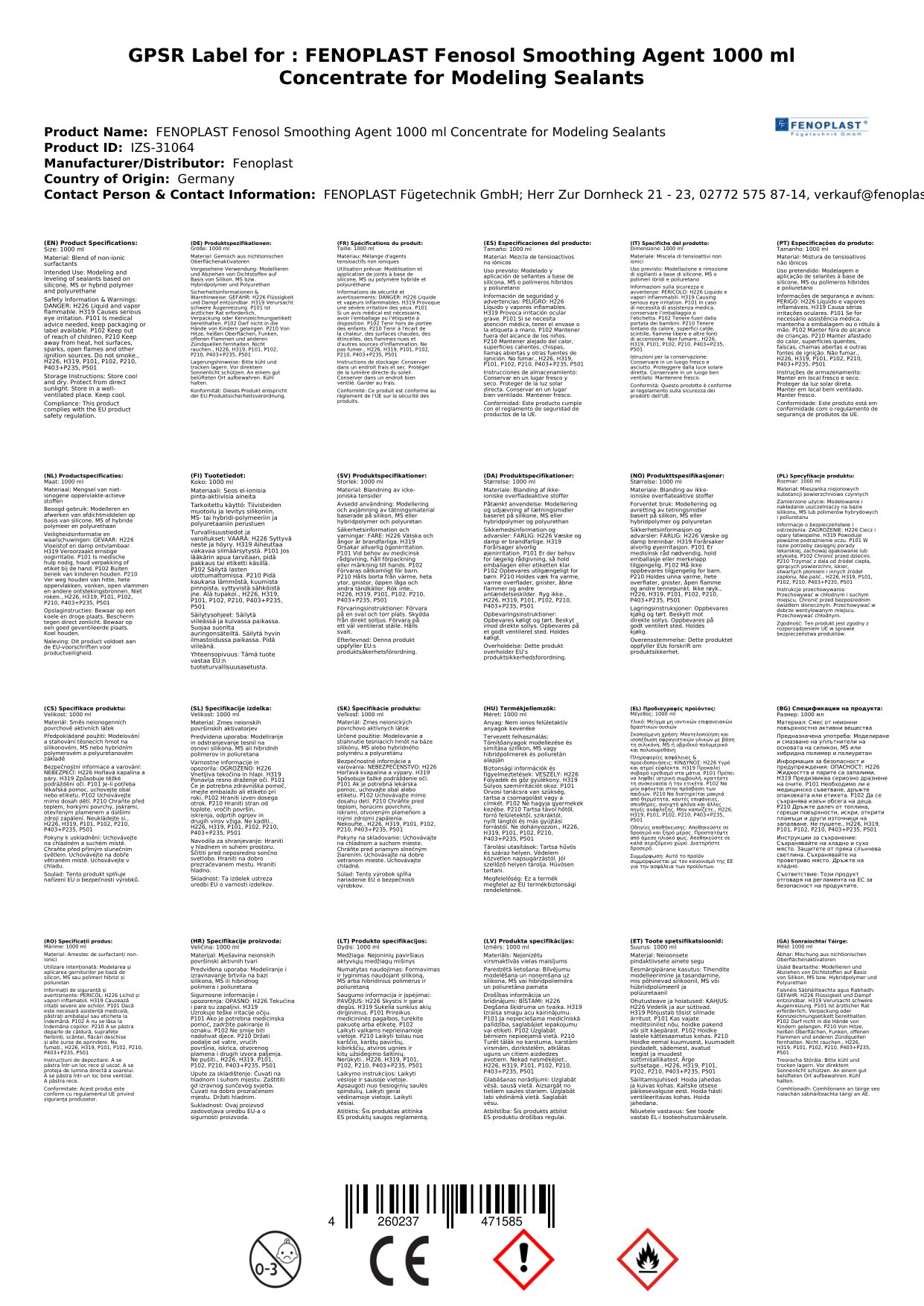 Cuir ceist chun níos mó a fhoghlaim faoin táirgeGlicdhíon, Tiúchan, Oibreán smoothing, 1000 ml, Dúnadh múnlaithe