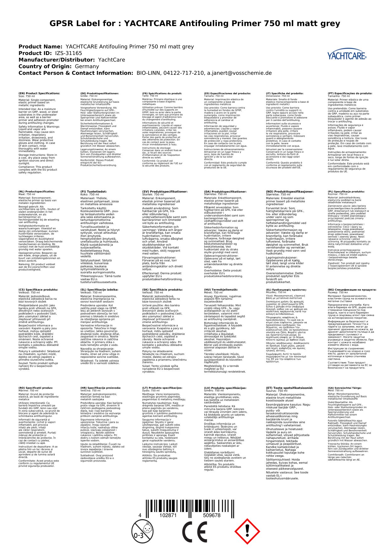 Cuir ceist chun níos mó a fhoghlaim faoin táirgePrimer Antifouling 750 ml, Liath Neamhlonrach, Primer Bád