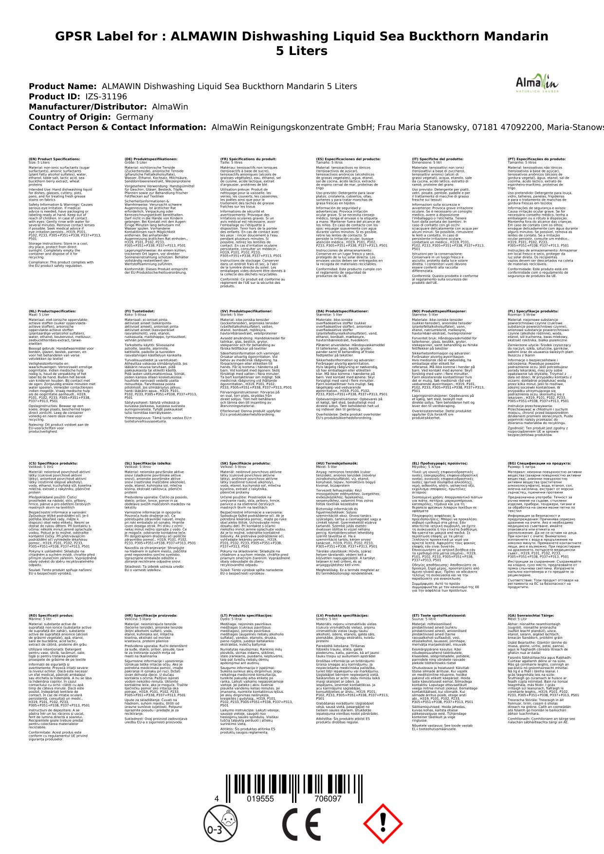 Glanadh mias 5 L, Leacht níocháin mias Sanddorn Mandarine