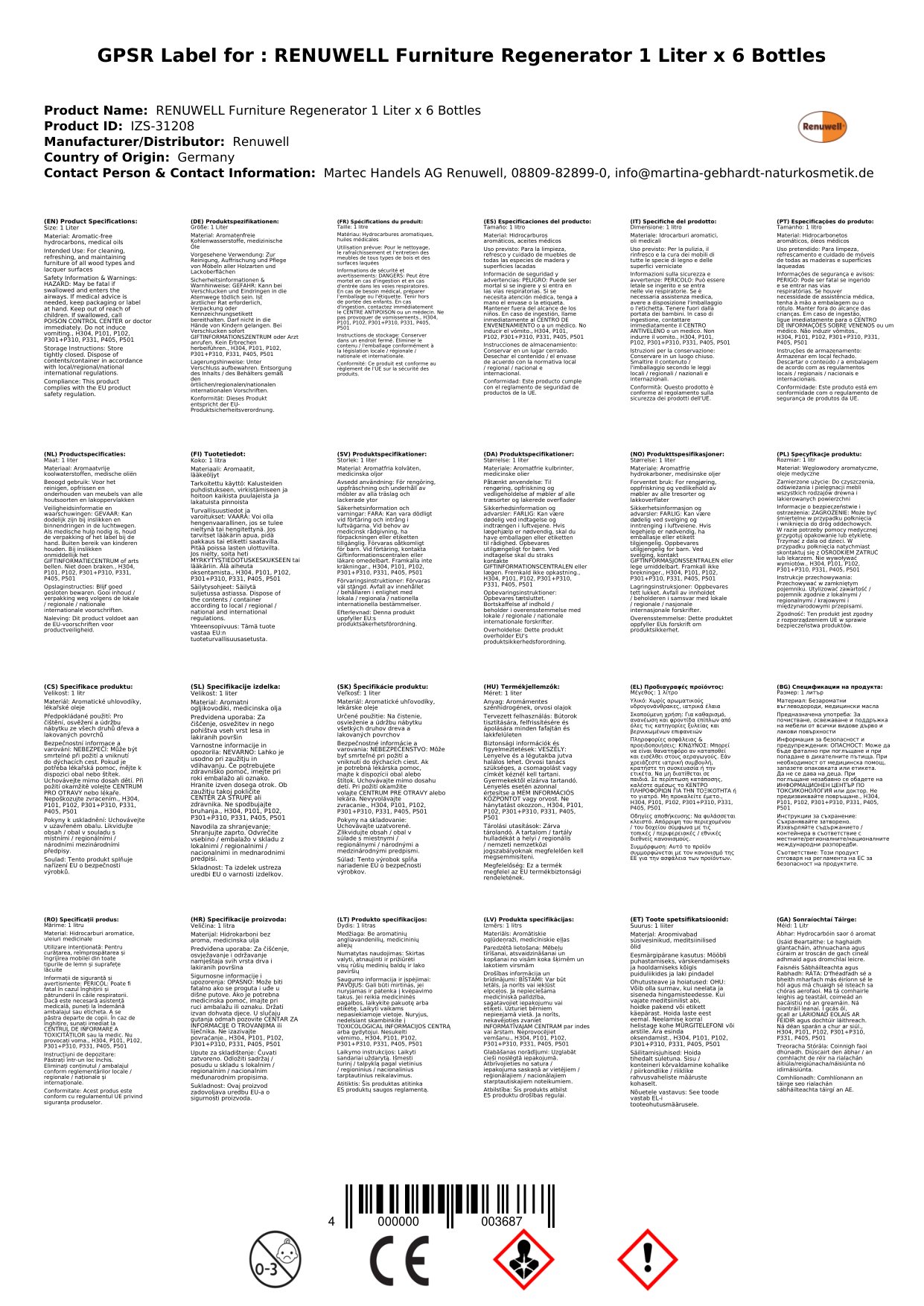 Cuir ceist chun níos mó a fhoghlaim faoin táirgeAthchóiritheoir Troscáin, Athnuachan Troscáin, Cúram Troscáin, 1 Lítear x 6 Flaschen