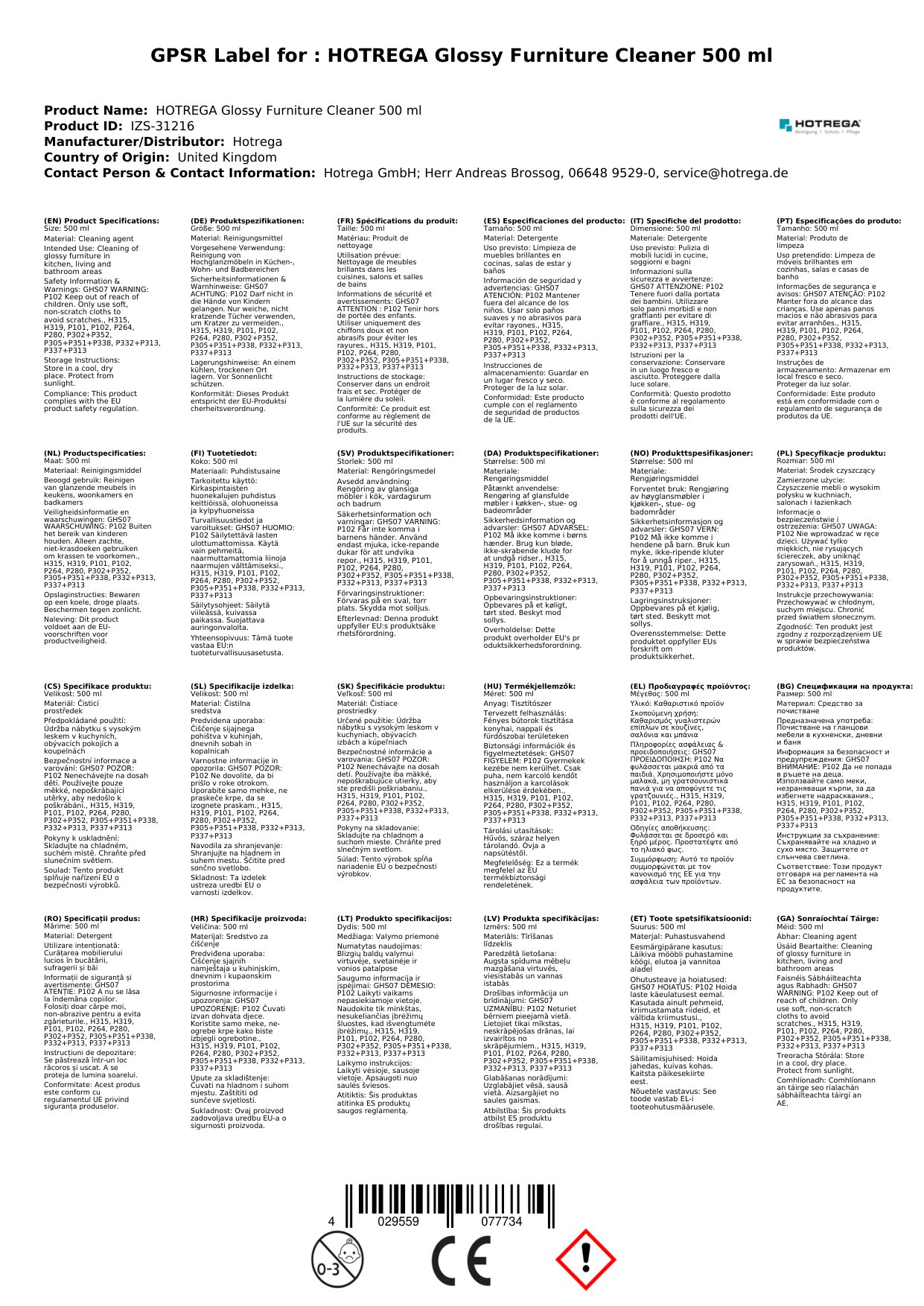 Glanadh troscáin ard-snasta, Glanadóir troscáin, 500 ml