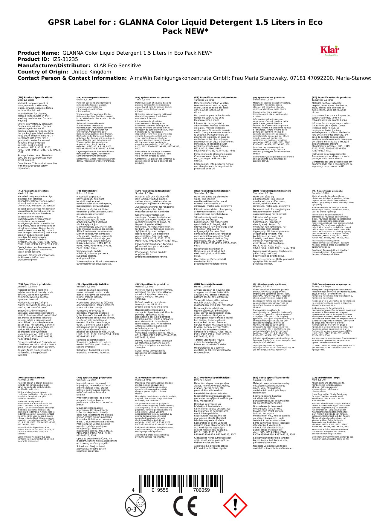 Glanadh dathanna, Glanadh leachtach dathanna 1.5 lítear, Pacáiste éicea