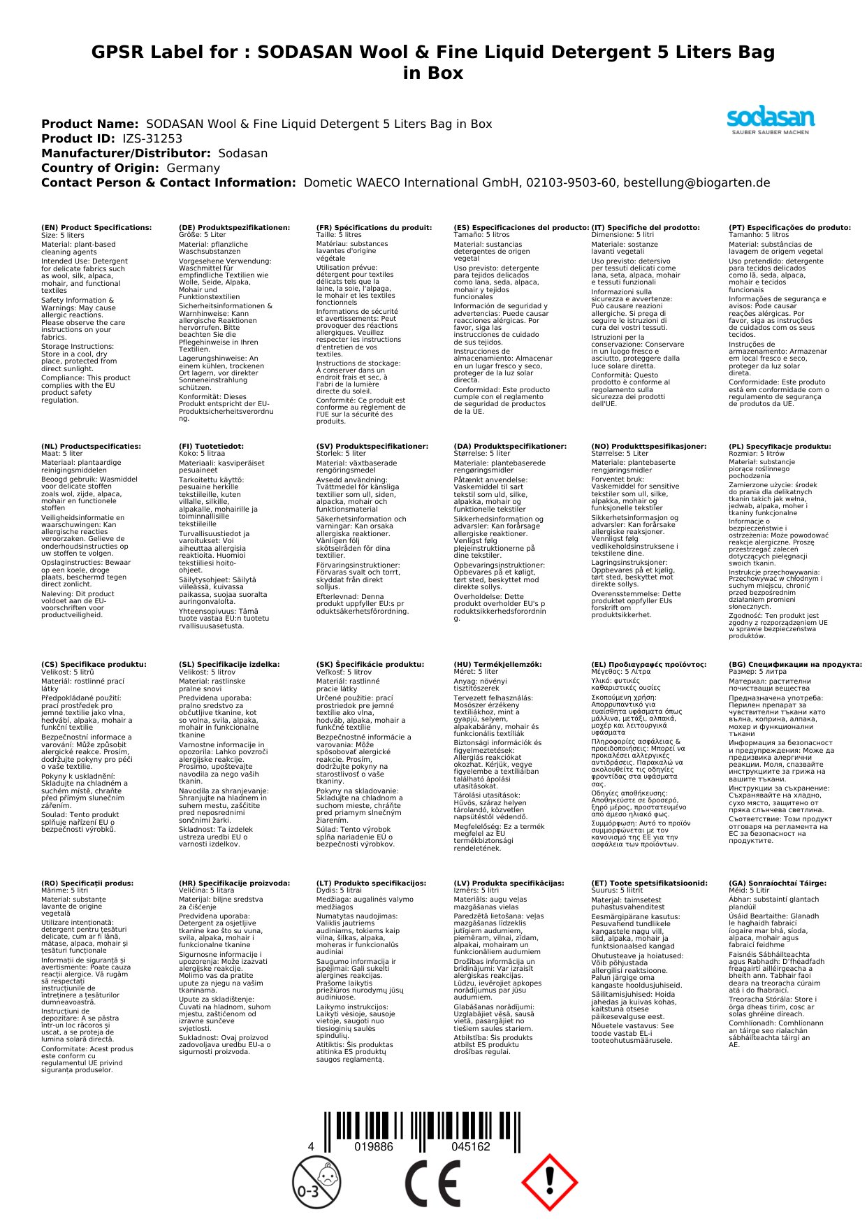 An bhfuil tú ag lorg bealach éifeachtach agus éiceolaíoch chun d'olann agus d'éadaí mín a ní? Tá ár Glantóir Leachtach Mín Olann Sodasan 5 Lítear foirfe duit. Glanann sé d'éadaí go réidh agus go héifeachtach, ag fágáil iad bog agus úr. Bain triail as inniu agus tabhair aire do do chuid éadaí agus don timpeallacht!