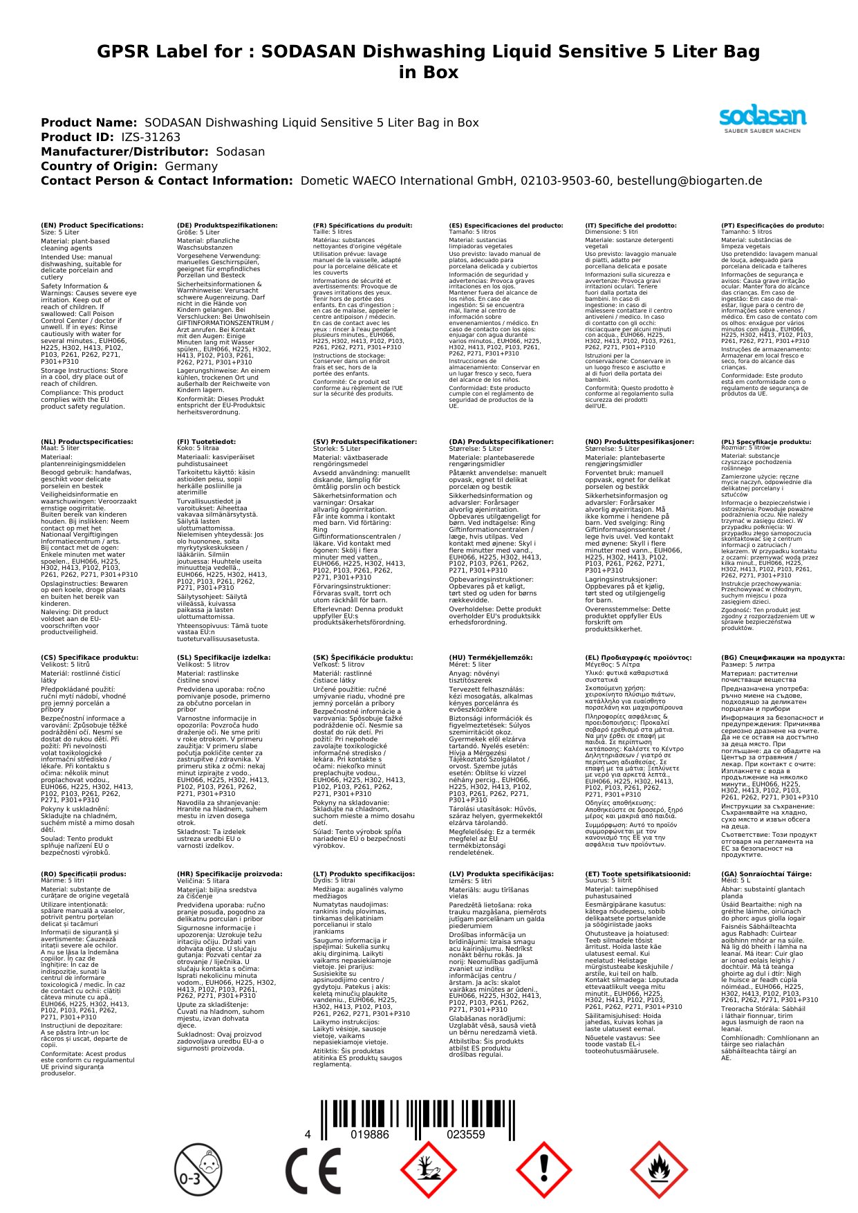 An bhfuil tú ag lorg leacht níocháin mhias íogair atá éifeachtach agus cairdiúil don chomhshaol? Tá an leacht níocháin mhias seo foirfe duitse! Tá sé deartha go speisialta do chraiceann íogair agus tá sé saor ó chumhráin shaorga. Leis an bpacáistiú mála i mbosca 5 lítear, tá tú ag laghdú dramhaíola plaistí agus ag sábháil airgid san fhadtréimhse.