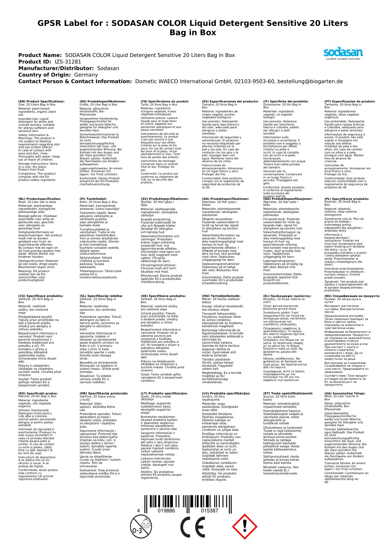 - Toirt 20L: Pacáiste mór a sholáthraíonn go leor níochán, ag sábháil airgid duit san fhadtéarma. Ní gá duit a bheith ag ceannach glantach chomh minic.