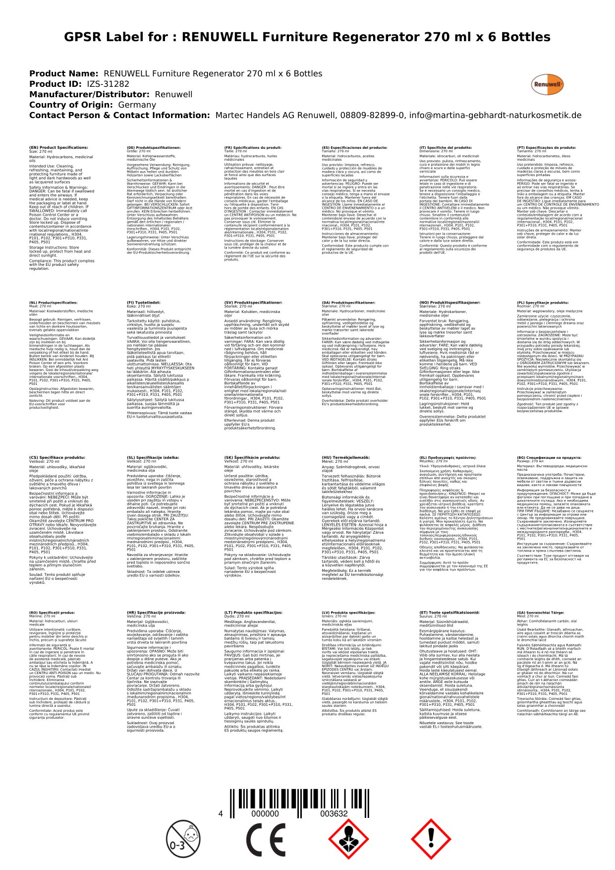 Cuir ceist chun níos mó a fhoghlaim faoin táirgeAthchóiritheoir Troscáin, Cothabháil Troscáin, Glanadh Troscáin, 270 ml x 6 Flaschen