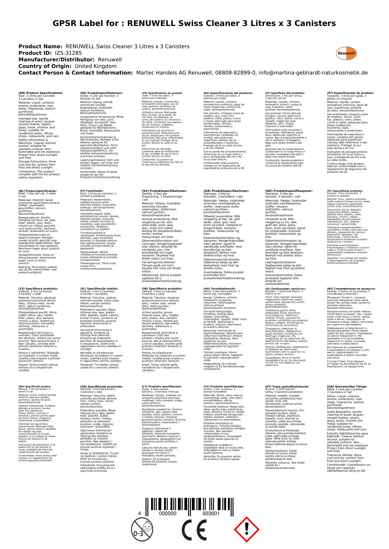 Cuir ceist chun níos mó a fhoghlaim faoin táirgeGlanadh Renuwell 3 Lítear x 3, Glanadh Uilíoch, Glanadh Tí