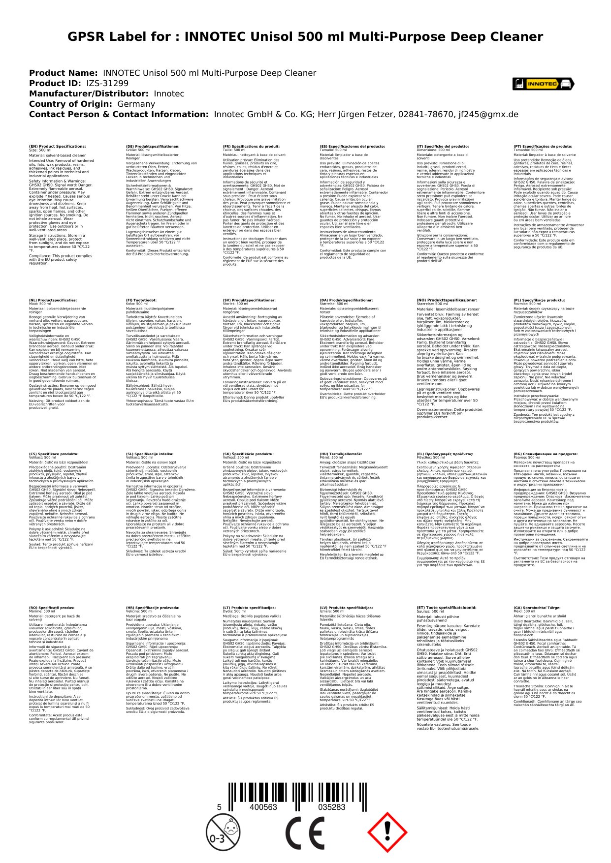 Tá an Glanadh domhain ilchuspóireach seo deartha chun dromchlaí éagsúla a ghlanadh go héifeachtach. Tá sé oiriúnach do ghlanadh tí, glanadh dromchlaí, agus chun stains láidre a bhaint. Tá an táirge seo i bhfoirm leachtach agus tagann sé i mbotella sprae 500 ml, rud a fhágann go bhfuil sé éasca a úsáid. Cén fáth go bhfuil sé seo tábhachtach duit: is féidir leat a bheith ag súil le glantóir ildánach, éasca le húsáid a choinneoidh do theach glan agus slachtmhar.