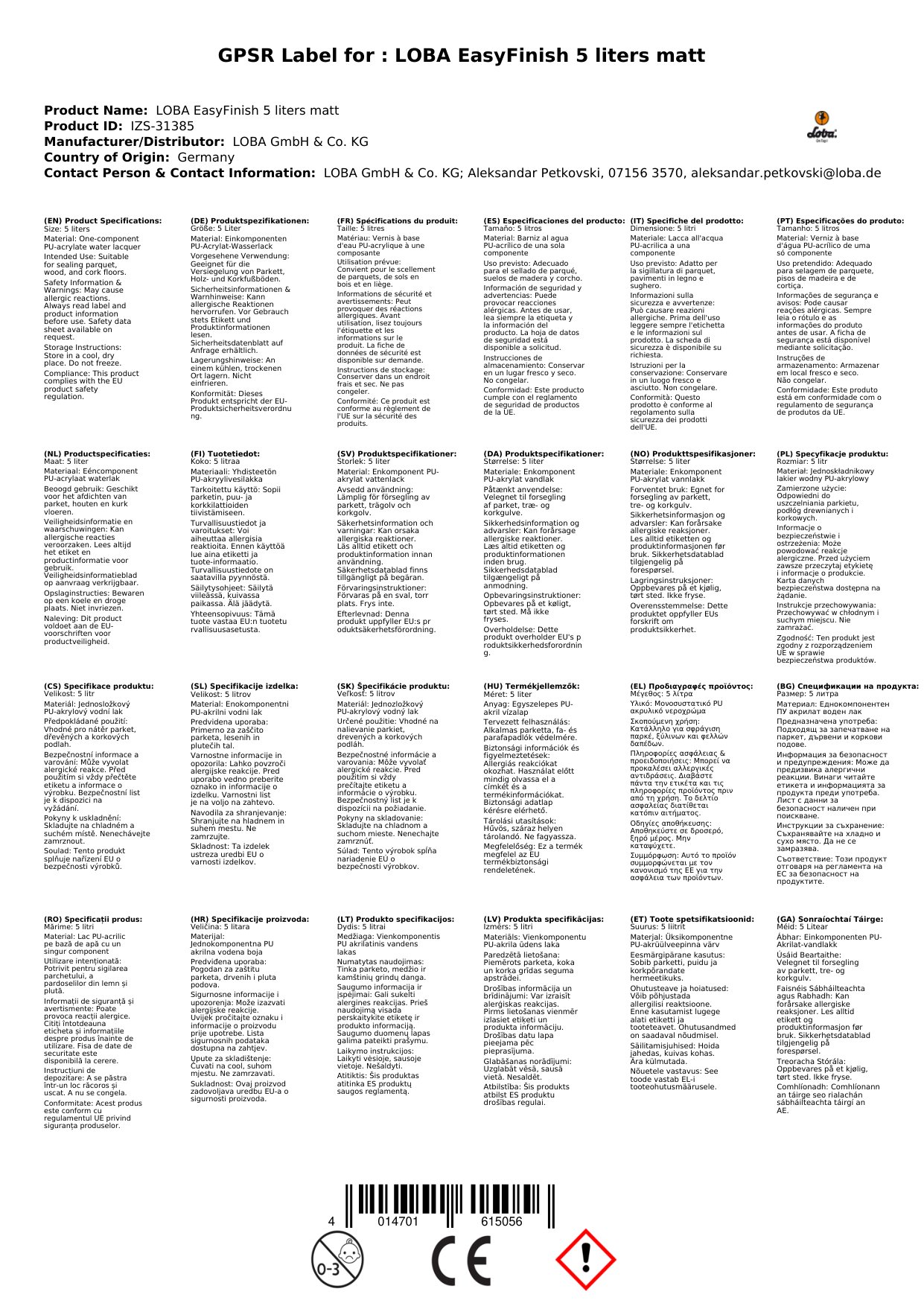 Cuir ceist chun níos mó a fhoghlaim faoin táirgeLoba EasyFinish 5 Lítear, Vearnais adhmaid Neamhlonrach, Críochnú adhmaid Neamhlonrach