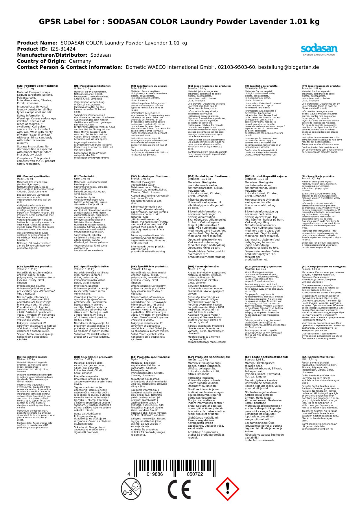 Cuir ceist chun níos mó a fhoghlaim faoin táirgeGlantach níocháin dathanna, púdar níocháin lavanda 1,01 kg, níochán dathanna