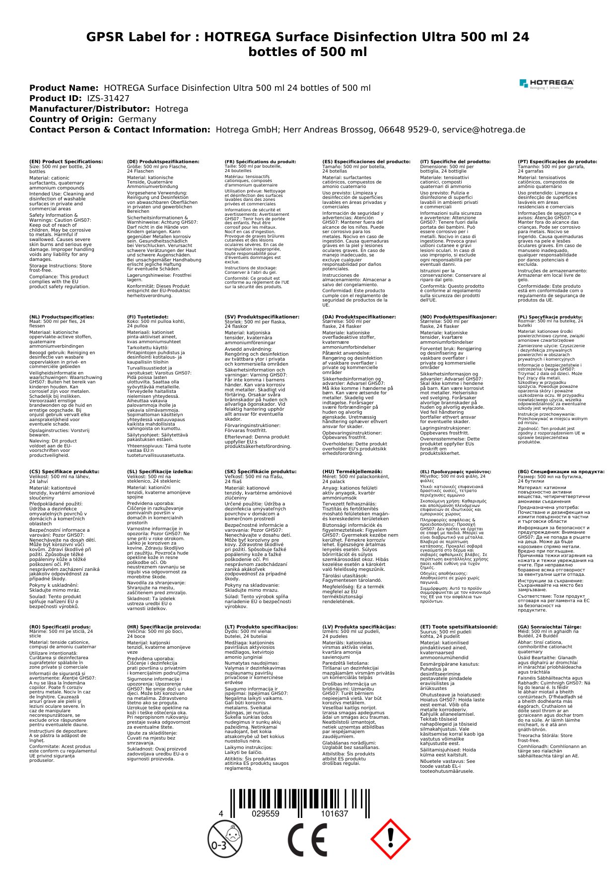 Ár ndífhabhtán dromchla i bpacáiste de 24 buidéal 500 ml an ceann. Tá sé deartha chun dromchlaí a ghlanadh agus a dhífhabhtú go héifeachtach, ag fágáil iad glan agus sláintiúil. Tá sé oiriúnach le húsáid ar réimse leathan dromchlaí, rud a chinntíonn cosaint leathan speictrim i gcoinne bhaictéar agus víris. Cuidíonn úsáid rialta leis an mbaol ionfhabhtaithe a laghdú. Tá an pacáiste seo an-oiriúnach dóibh siúd a bhfuil gá acu le dífhabhtán ar scála mór.