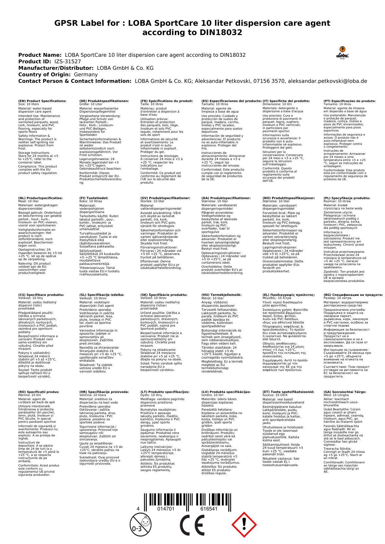 Cuir ceist chun níos mó a fhoghlaim faoin táirgeCúram Spóirt 10 Lítear, Dispersionspflegemittel, Cúram urláir DIN18032