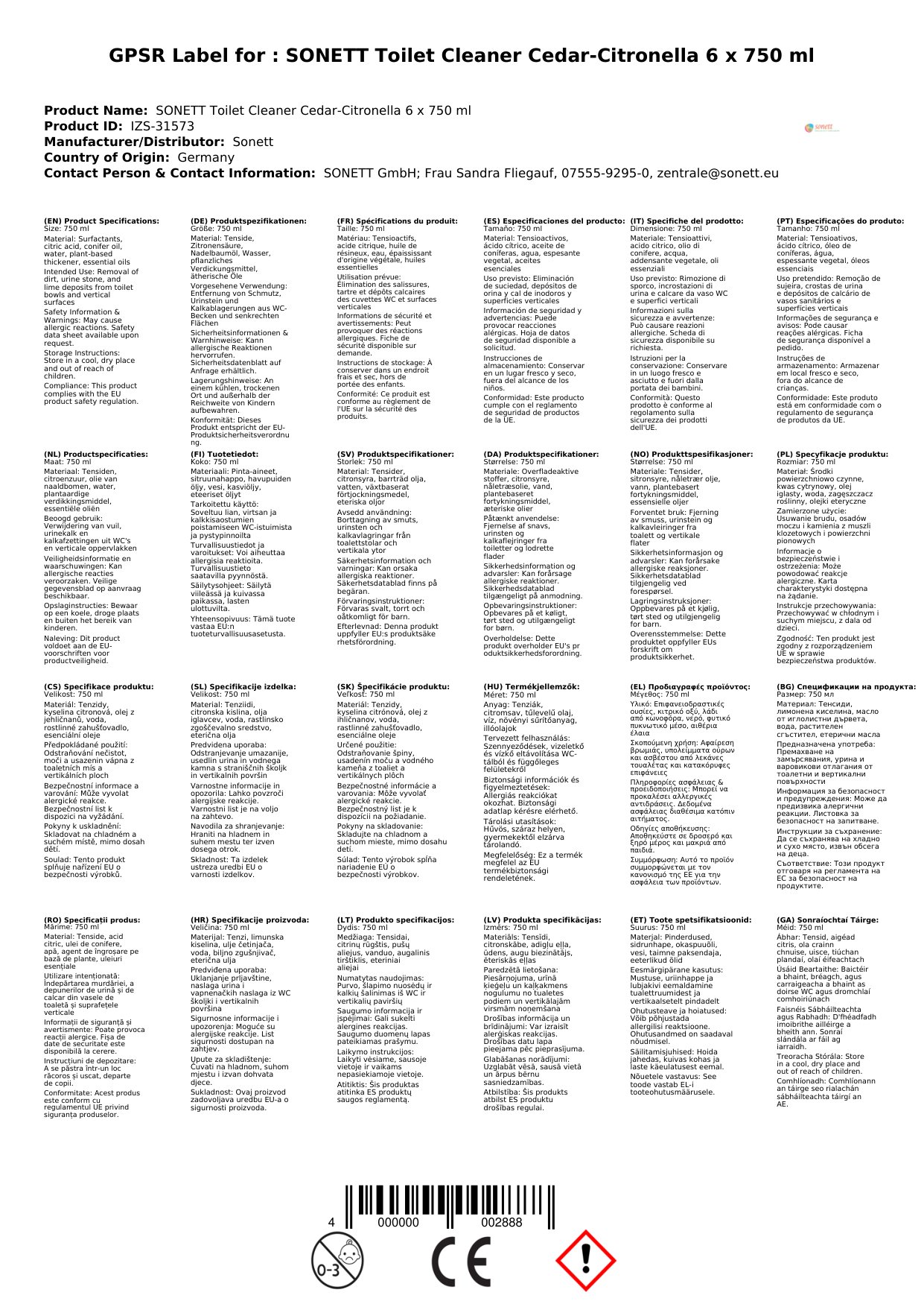 An bhfuil tú tuirseach de ghlantóirí leithris atá lán de cheimiceáin dhian? Ar mhaith leat rogha nádúrtha, éifeachtach agus cairdiúil don chomhshaol a úsáid? Tá Glanadh Leithris Cedar Citronella Sonett anseo chun cabhrú leat! Leis an bhfoirmle nádúrtha seo, is féidir leat do leithreas a choinneáil glan agus úr, agus tú ag cosaint an chomhshaoil. Bain sult as cumhrán nádúrtha Cedar agus Citronella, agus faigh amach an difríocht!