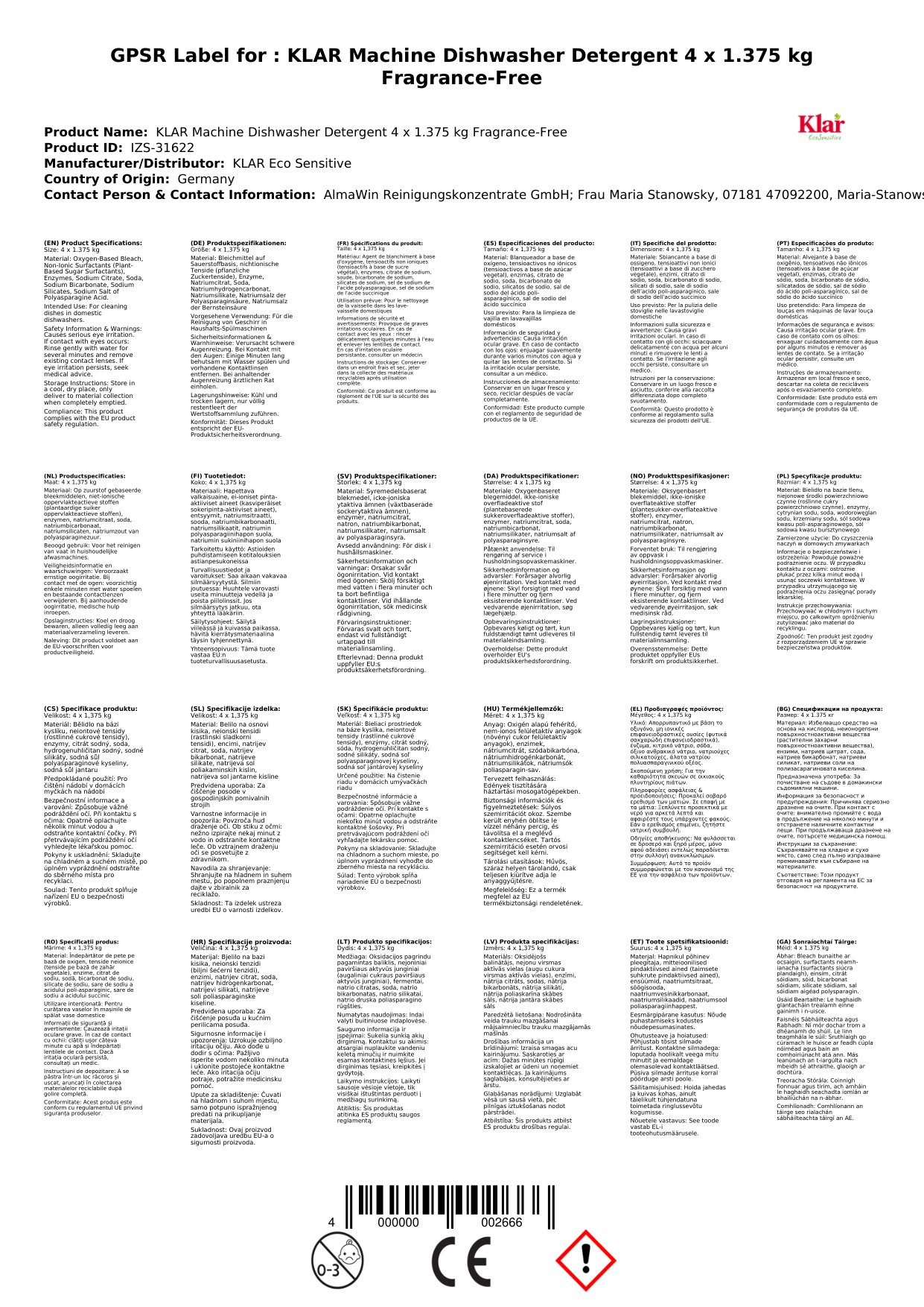 | Brand: | KLAR Eco Sensitive |