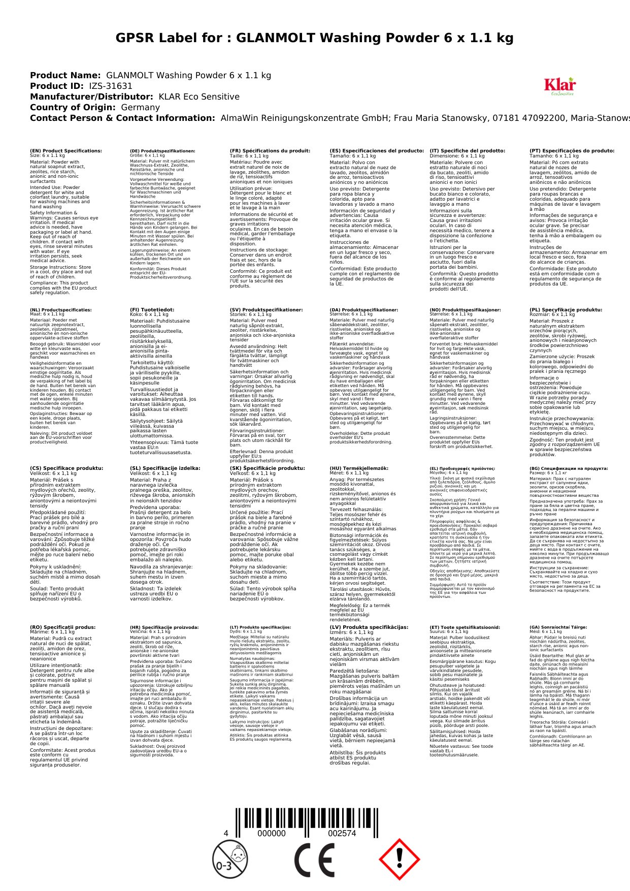 | Brand: | KLAR Eco Sensitive |