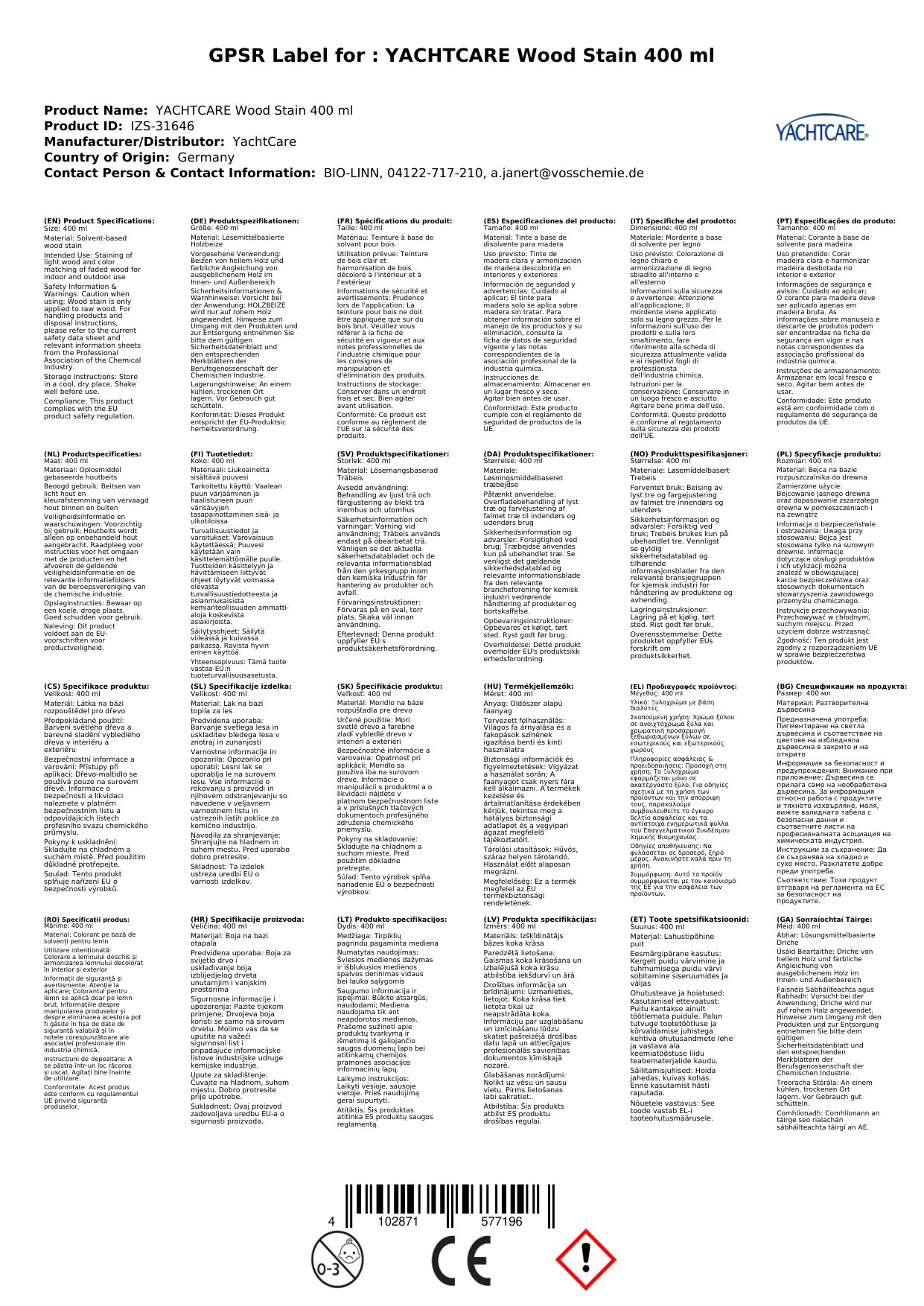 Soláthraíonn ár stáin adhmaid cosaint den scoth agus bailchríoch álainn. Le toirt 400ml, tá go leor agat chun tionscadail éagsúla a chríochnú. Tá sé oiriúnach chun adhmaid a chosaint ó na heilimintí, agus tá sé éasca a chur i bhfeidhm. Cén fáth go bhfuil sé seo tábhachtach duit: is féidir leat brath ar tháirge a choimeádann do adhmaid cosanta agus a chuireann le a áilleacht le himeacht ama.