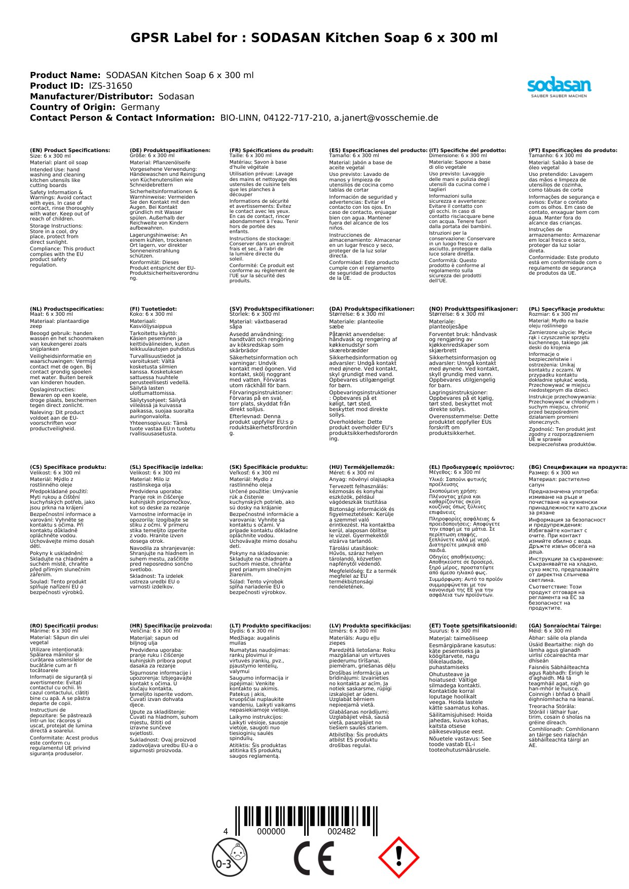 Tá ár Gallúnach Cistine nádúrtha deartha chun an glanadh is fearr a sholáthar gan ceimiceáin chrua a úsáid. Tá sé bunaithe ar chomhábhair nádúrtha a ghlanann go héifeachtach agus a fhágann do chistin ag taitneamh. Leis an bpacáiste 6 x 300 ml, tá go leor gallúnaí agat chun do chistin a choinneáil glan ar feadh i bhfad. Oiriúnach do gach dromchla cistine, is rogha iontach é chun timpeallacht shláintiúil a chruthú.