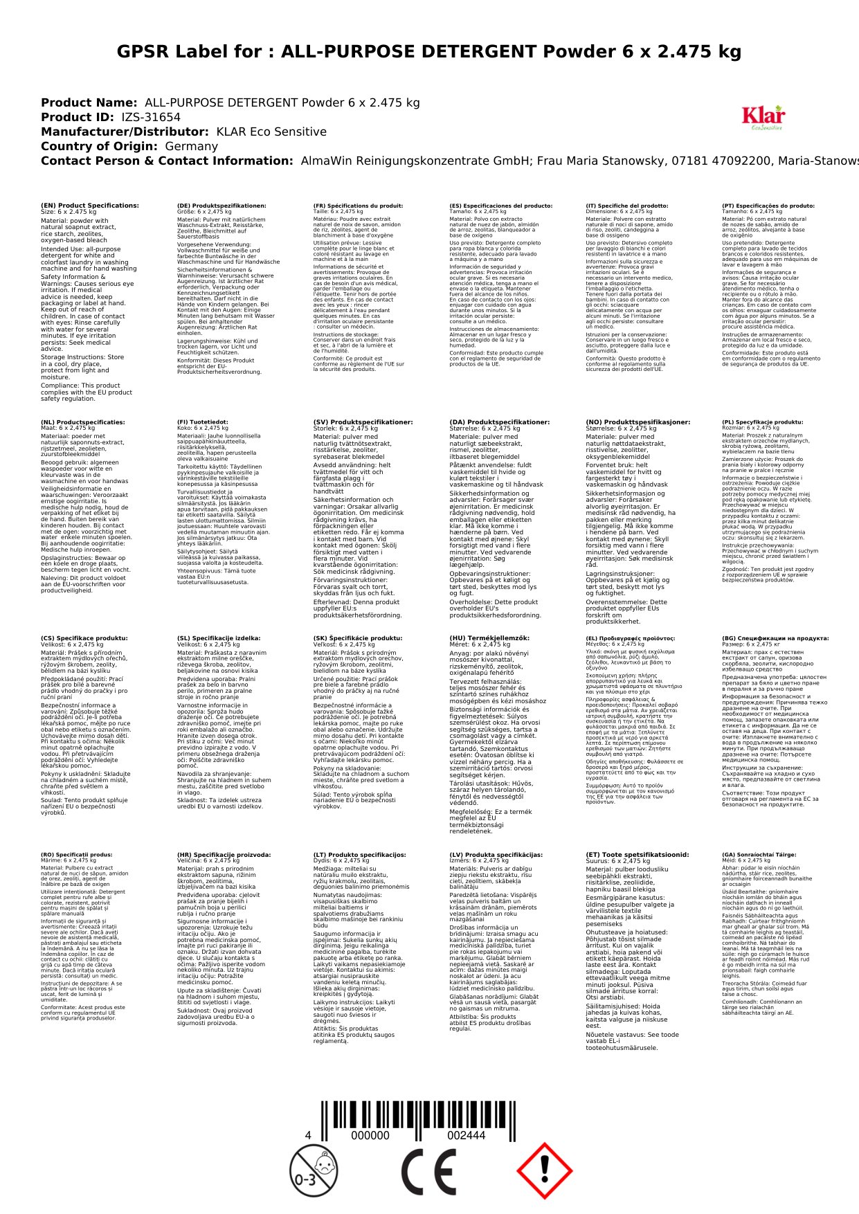 Cuir ceist chun níos mó a fhoghlaim faoin táirgeGlanadh púdar éadaí, Níochán púdar mórchóir, 6 x 2,475 kg, Glanadh púdar teaghlaigh