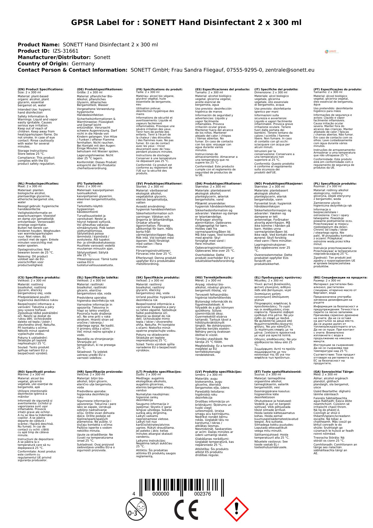 | Brand: | Sonett |