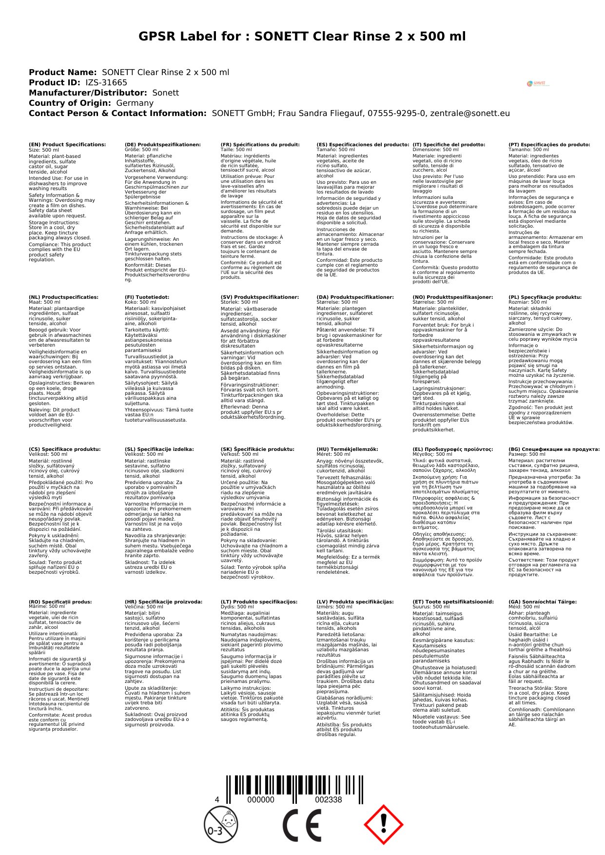 | Brand: | Sonett |