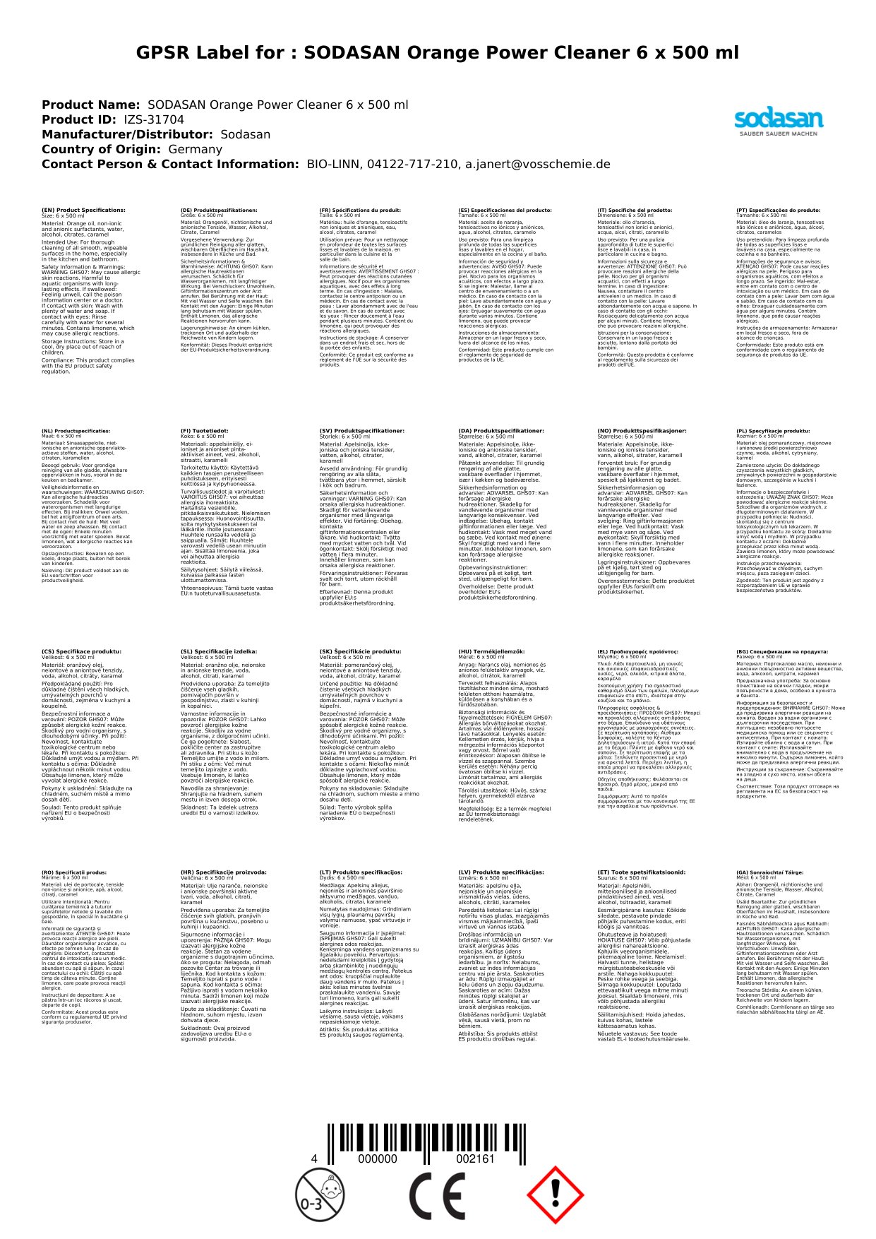 Cuir ceist chun níos mó a fhoghlaim faoin táirgeGlanadh cumhachta oráiste, Glanadh Tí Nádúrtha, Glanadh Oráiste, 6 x 500 ml