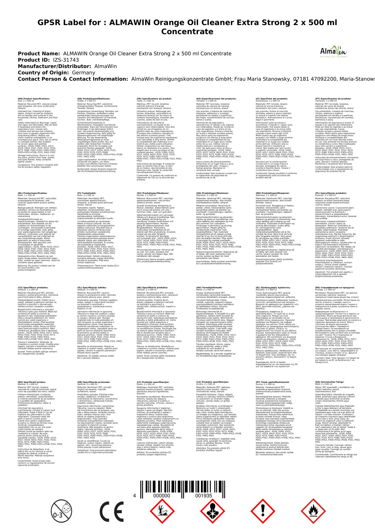 Cuir ceist chun níos mó a fhoghlaim faoin táirgeGlanadh ola oráiste, Glanadh láidir, 2 x 500 ml Konzentrat