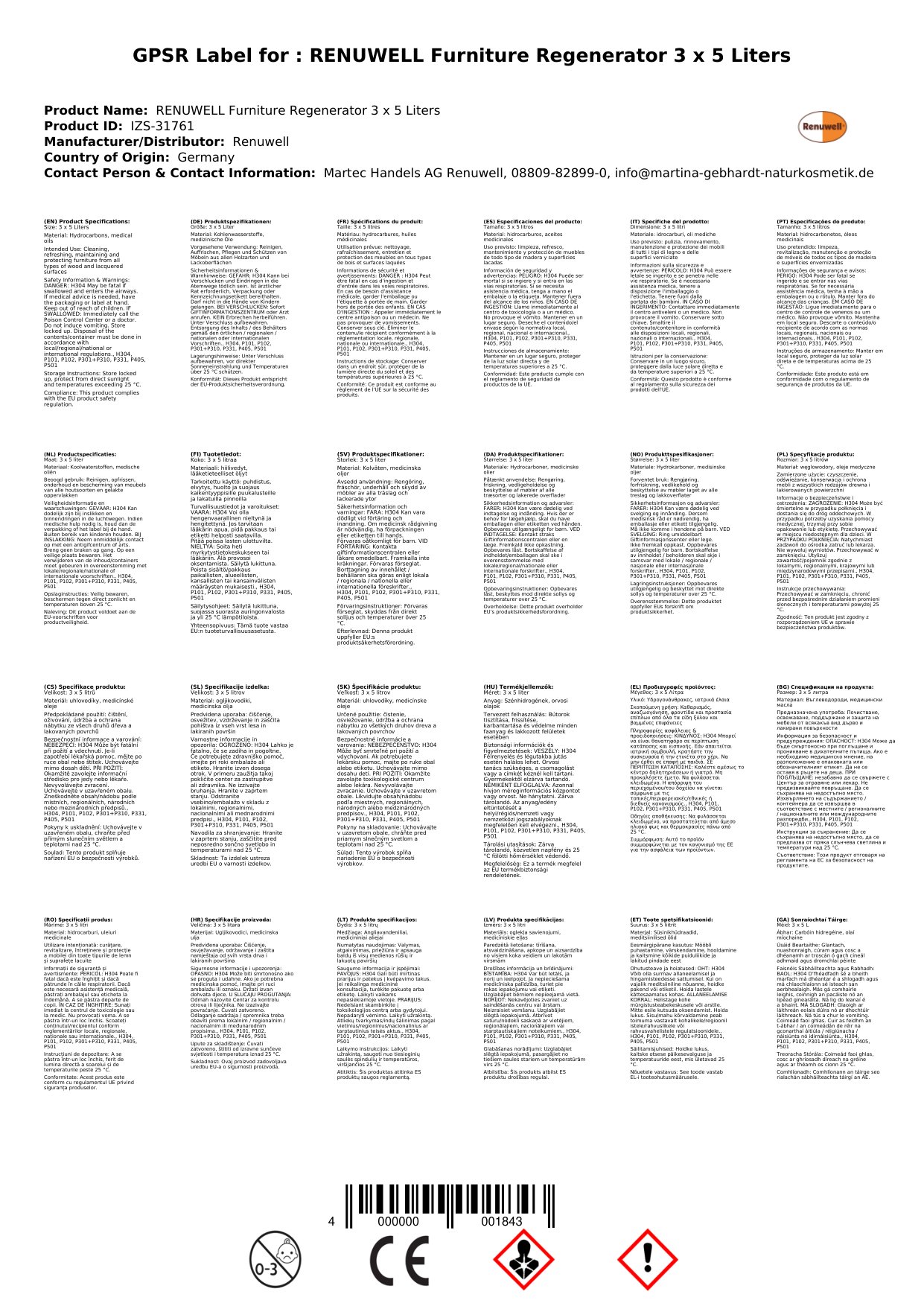 Soláthraíonn ár n-athghineadóir troscáin cúram iomlán do do throscán adhmaid. Le trí canna 5 lítear, tá go leor agat chun il píosaí a chóireáil. Tá an táirge seo deartha chun troscán a ghlanadh, a athbheochan, agus a chosaint. Cén fáth go bhfuil sé seo tábhachtach duit: Faigheann tú réiteach cuimsitheach chun aire a thabhairt do throscán adhmaid ar bhealach éifeachtach agus áisiúil.