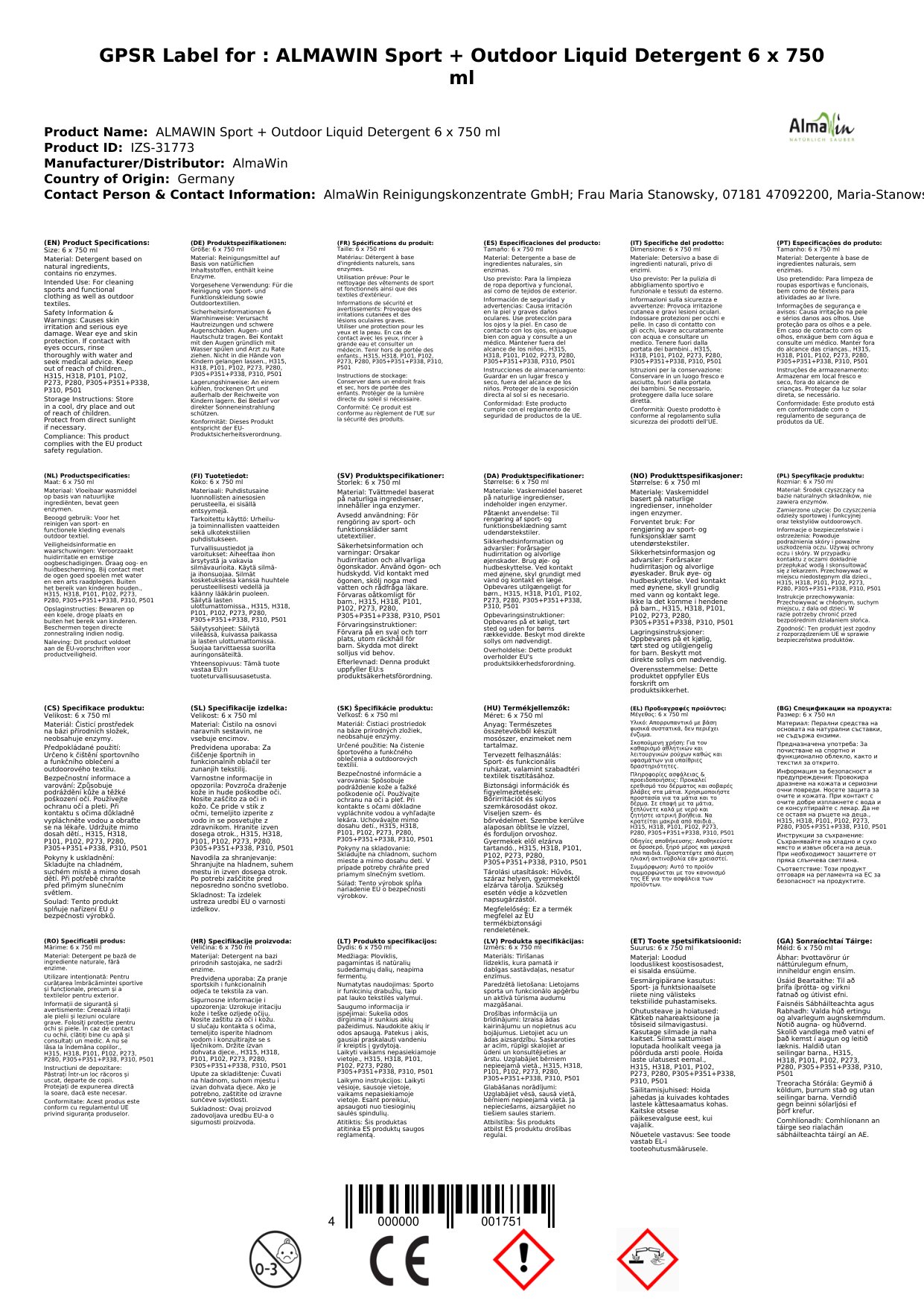 An bhfuil tú ag lorg réiteach éifeachtach le haghaidh glanadh spóirt agus níochán lasmuigh? Tá ár bhfoirmle speisialta deartha chun stains diana a bhaint agus boladh a neodrú. Tá an glantóir seo oiriúnach d'éadaí spóirt, trealamh lasmuigh, agus níos mó. Bain sult as na buntáistí a bhaineann le glaineacht dhomhain agus cúram fabraice lenár bpacáiste de 6 x 750 ml.