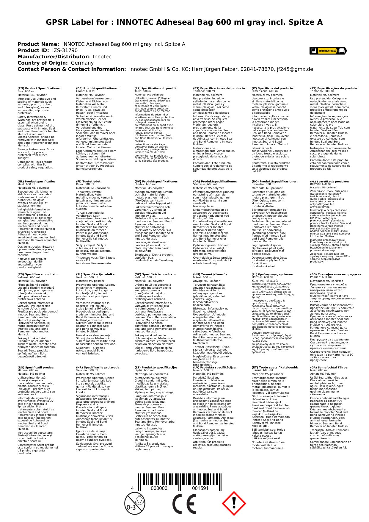 Cuir ceist chun níos mó a fhoghlaim faoin táirgeAdheseal 600ml, Séalaigh, liath, mála, incl. Spitze A