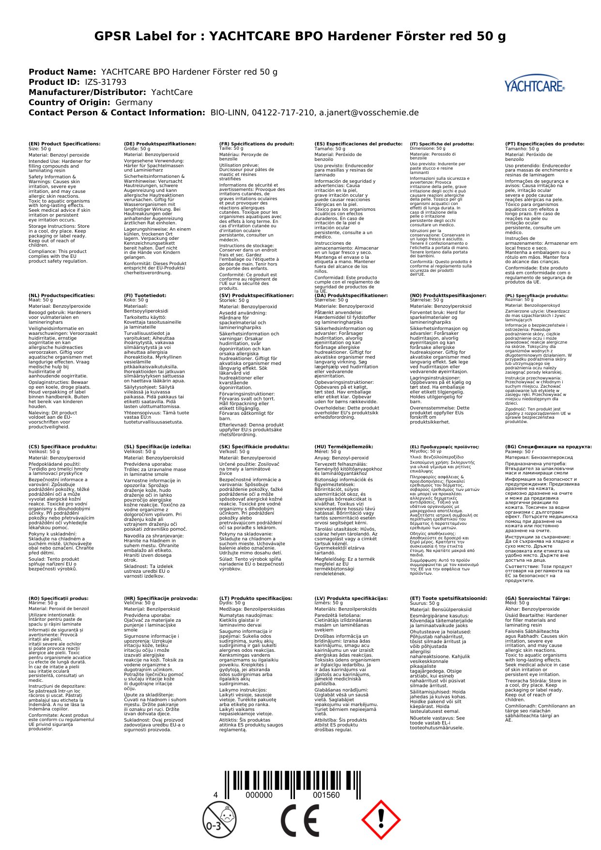 Cruaiteoir BPO, Cruaiteoir roisín, Cruaiteoir snáithínghloine, BPO 50g, Cruaiteoir dearg