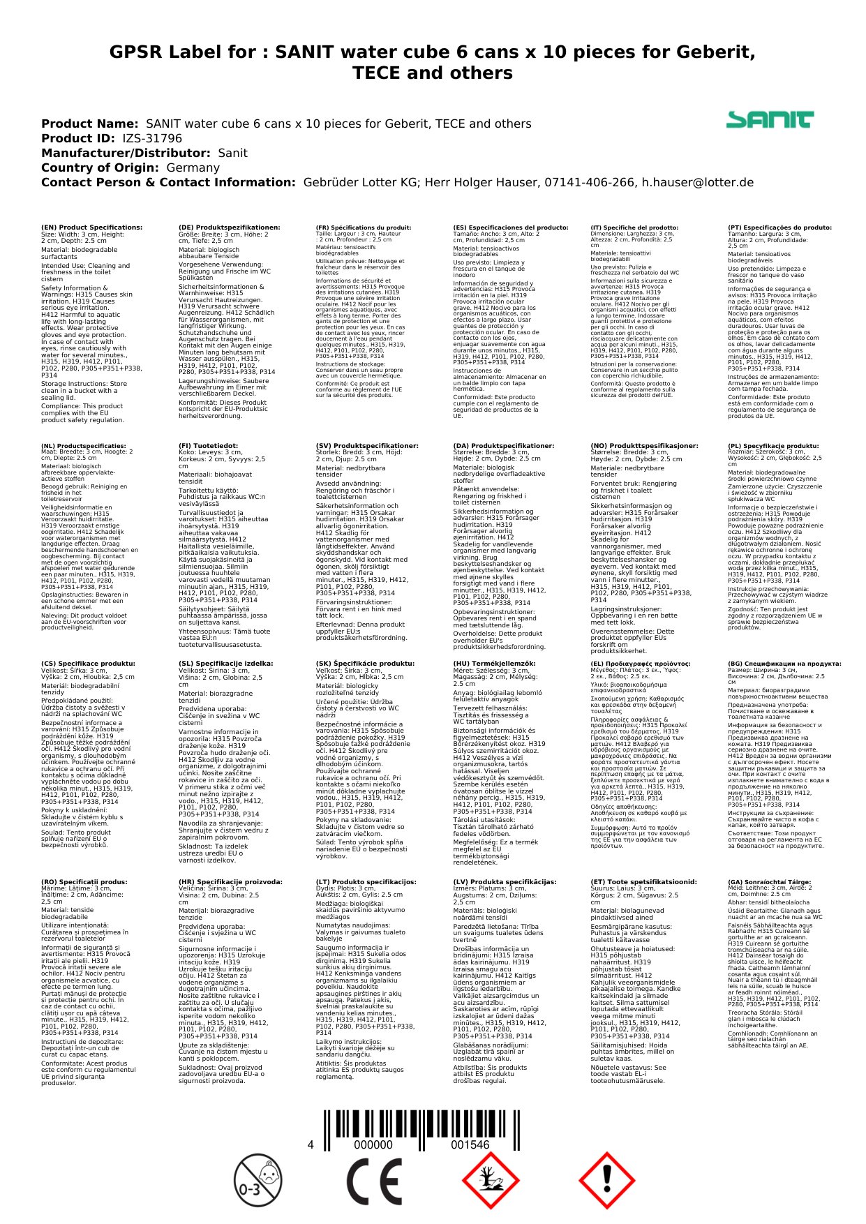 Cúbanna umar uisce, Cúbanna umar, Glanadh umar uisce, 6 Doses x 10 Stck.