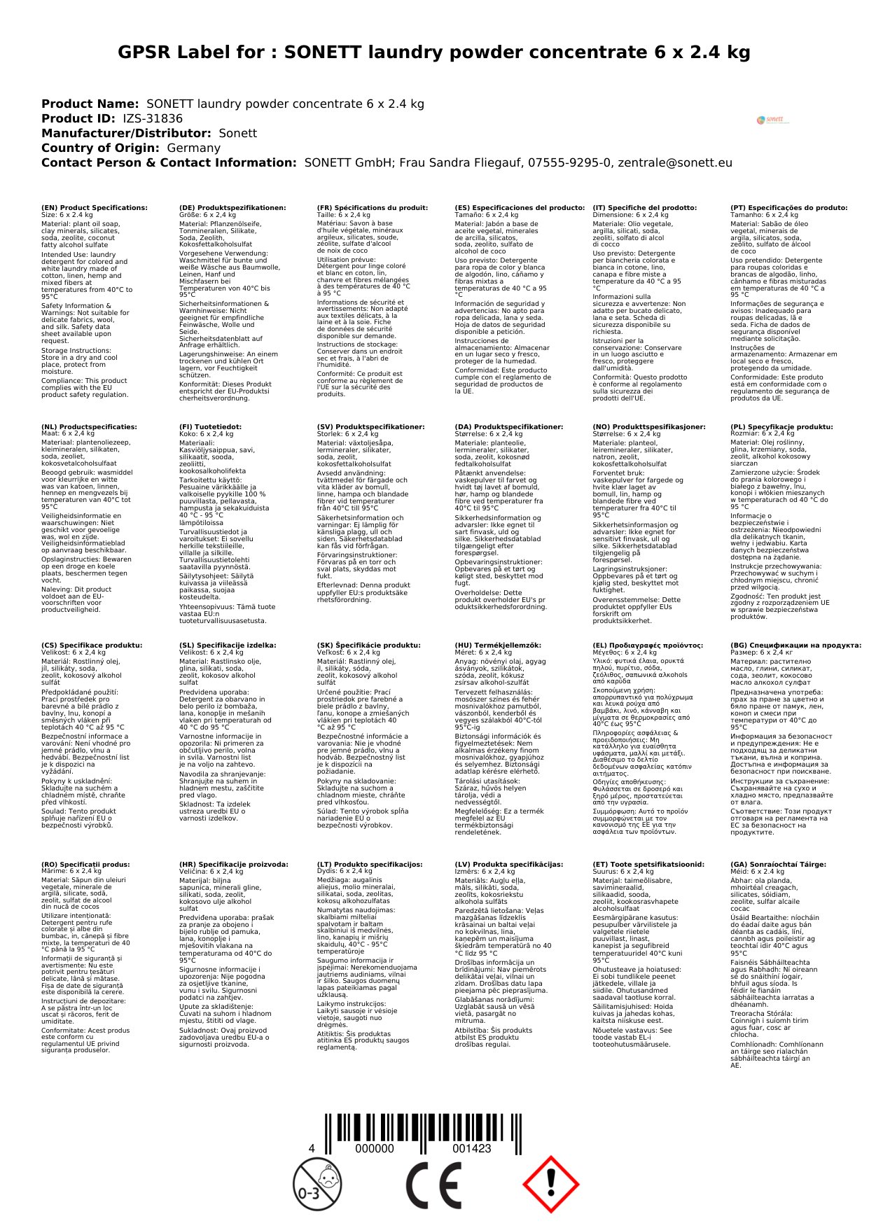 Cuir ceist chun níos mó a fhoghlaim faoin táirgeGlanadh níocháin púdar, 6 x 2,4 kg, Níochán éadaí, Glanadh níocháin