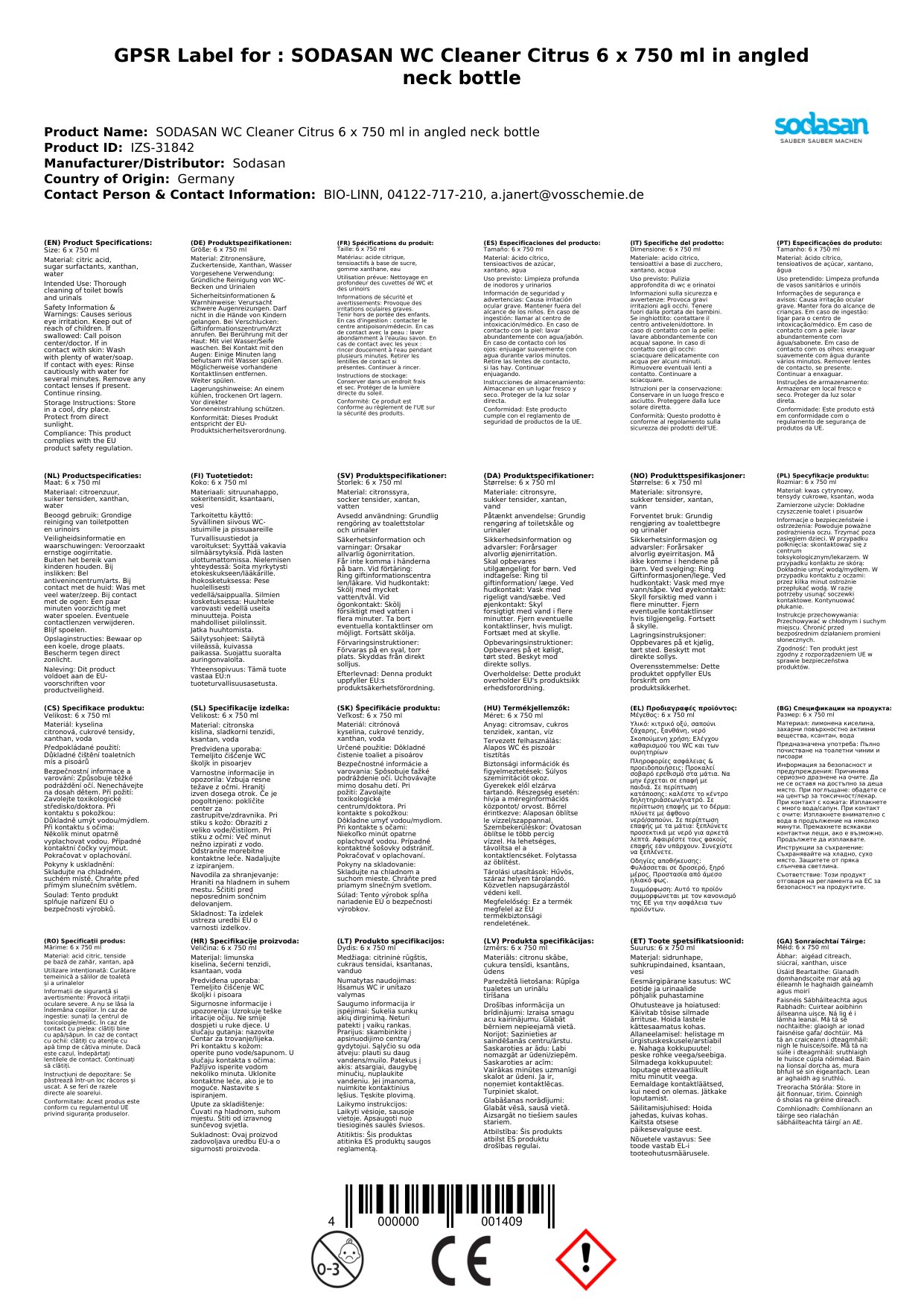 Cuir ceist chun níos mó a fhoghlaim faoin táirgeGlanadh leithris, Glanadh leithris citris, 6 x 750ml, Glanadh leithris nádúrtha
