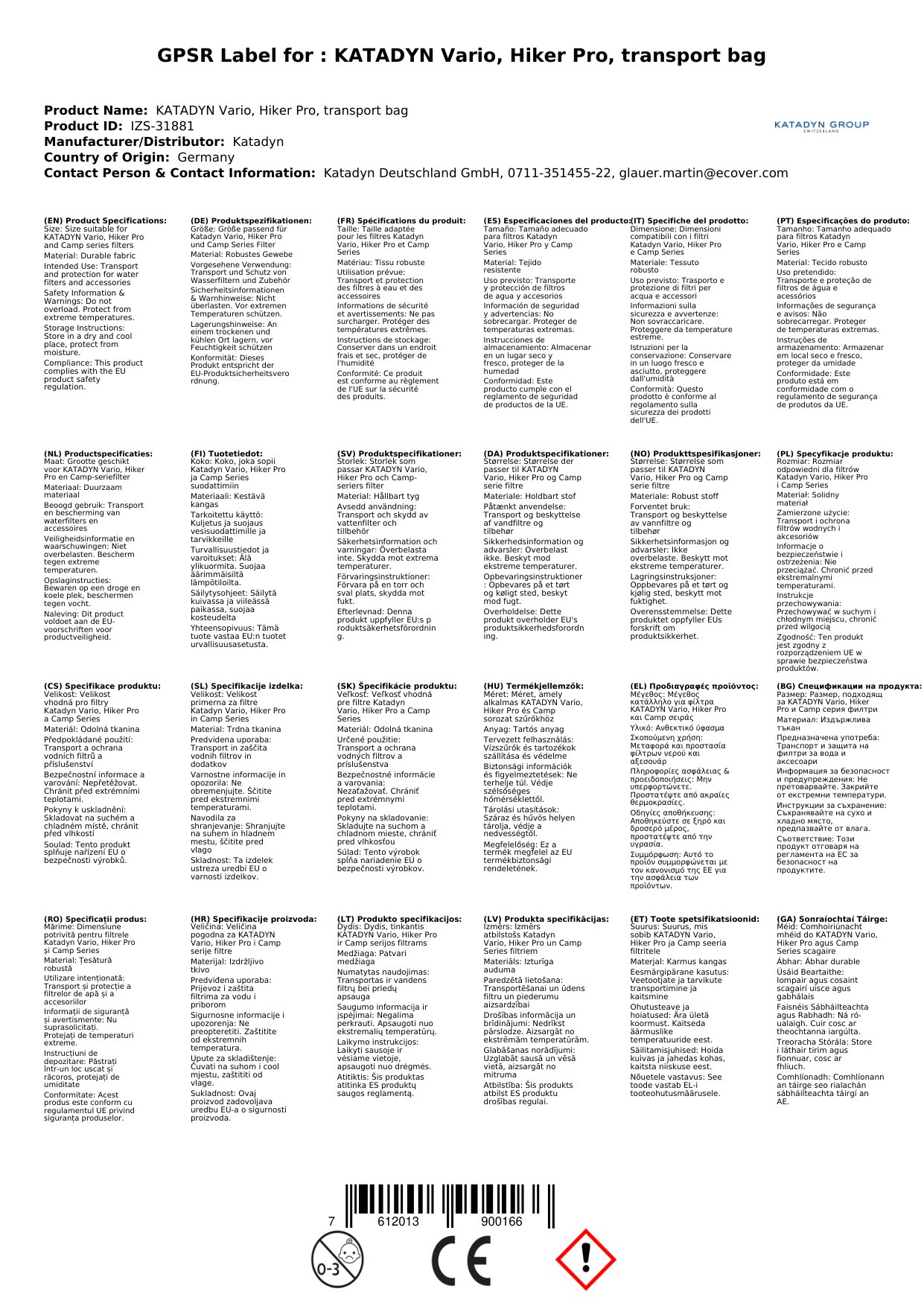 Nuair a cheannaíonn tú an Mála Iompair Campála KATADYN Vario Hiker Pro ónár siopa, gheobhaidh tú: