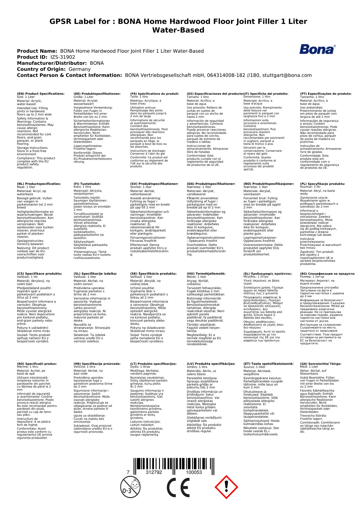 Bona Parkett Fugenkitt 1 Lítear, Fugenkitt uisce-bhunaithe, Deisiú Páircéad