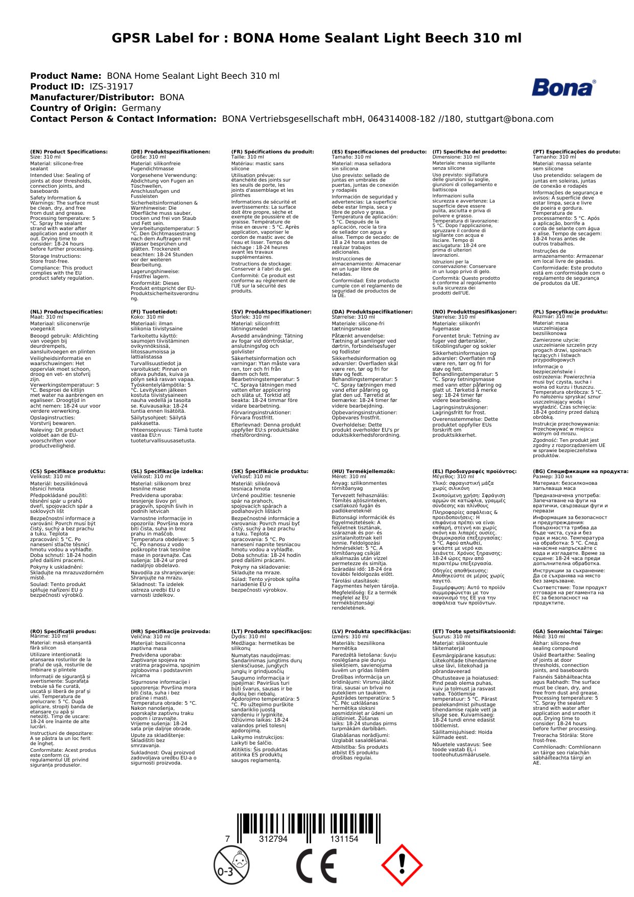 Cuir ceist chun níos mó a fhoghlaim faoin táirgeSéala Feadán Baile, Séala Feadán Beech Light, 310 ml, Beech Light Séala