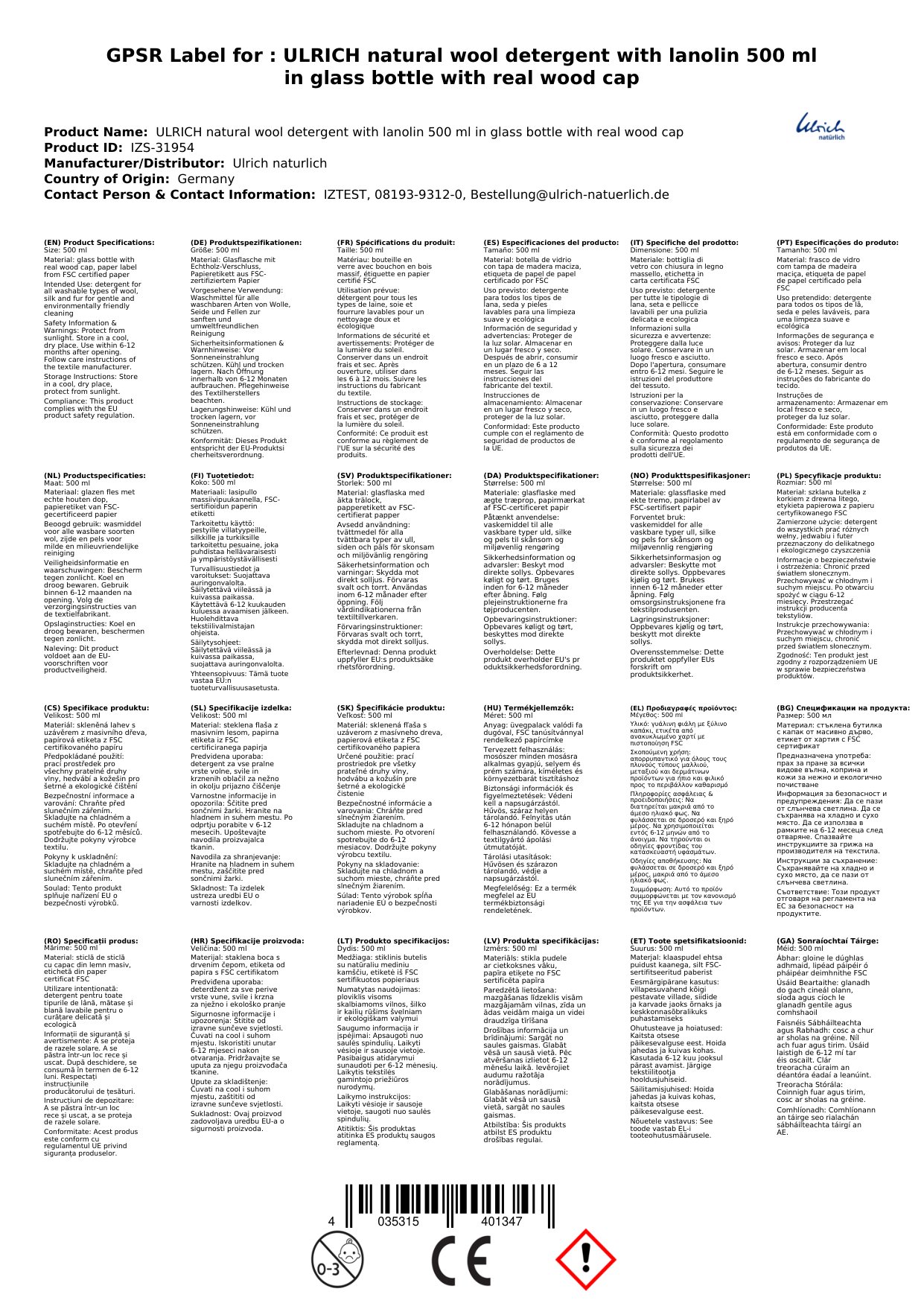 Cuir ceist chun níos mó a fhoghlaim faoin táirgeGlanadh olann le Lanolin, 500 ml, Buidéal gloine, Adhmad