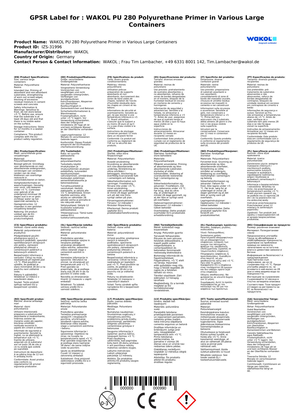 | Samhail | WAKOL PU 280 |