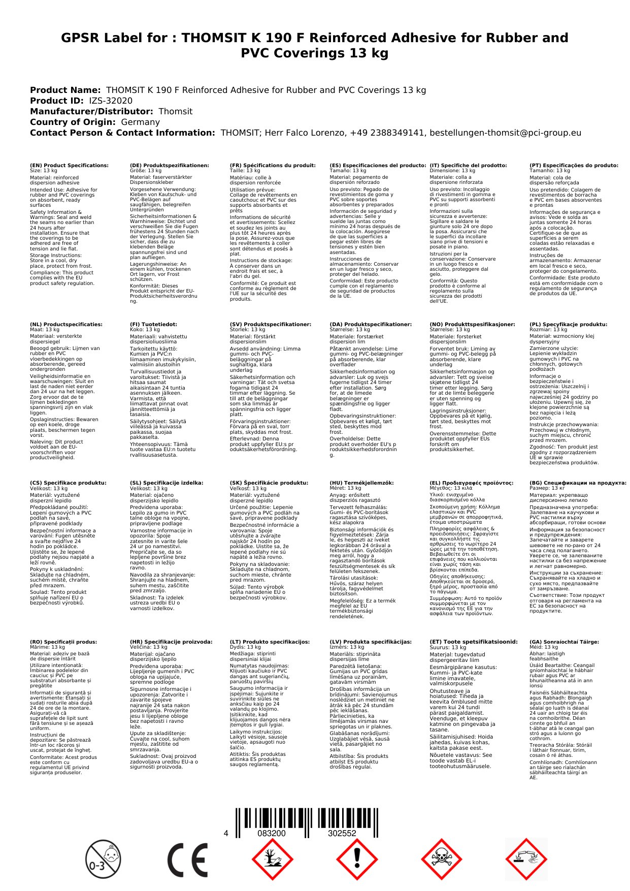 Gliú rubair, Gliú PVC, Gliú urláir, Gliú láidir, Gliú snáithín-treisithe 13 kg