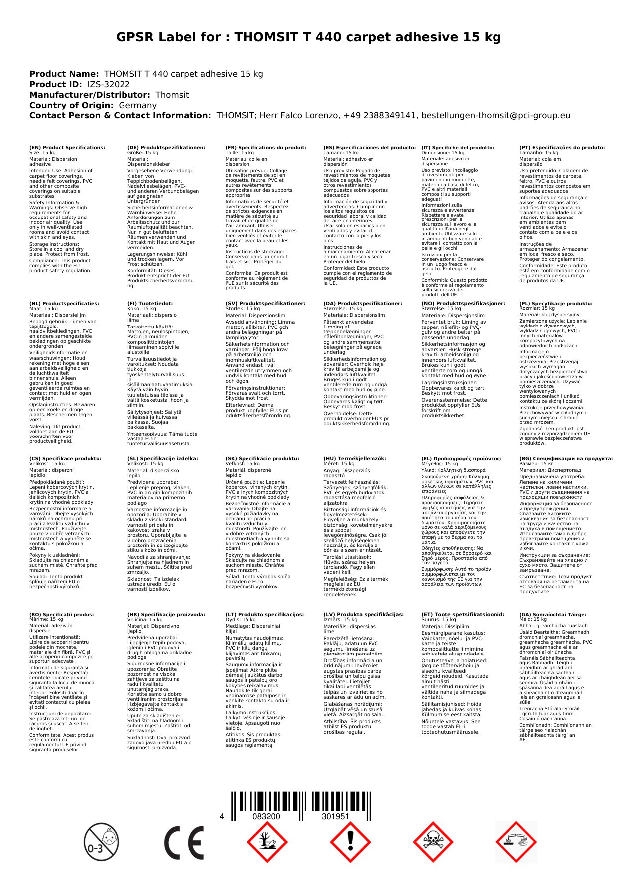 Tá ár ngliú cairpéad, greamachán urláir, agus gliú teicstíle ar fáil i méid 15 kg, rud a fhágann go bhfuil sé oiriúnach do thionscadail bheaga agus móra. Tá sé deartha le haghaidh greamaitheacht den scoth ar ábhair éagsúla. Cinnteoidh na sonraíochtaí seo go mbeidh tú in ann an táirge a úsáid go héifeachtach ar do chuid urlár, cairpéid agus teicstílí éagsúla. Roghnaigh an greamachán seo chun nasc láidir agus buan a bhaint amach i ngach feidhmchlár.