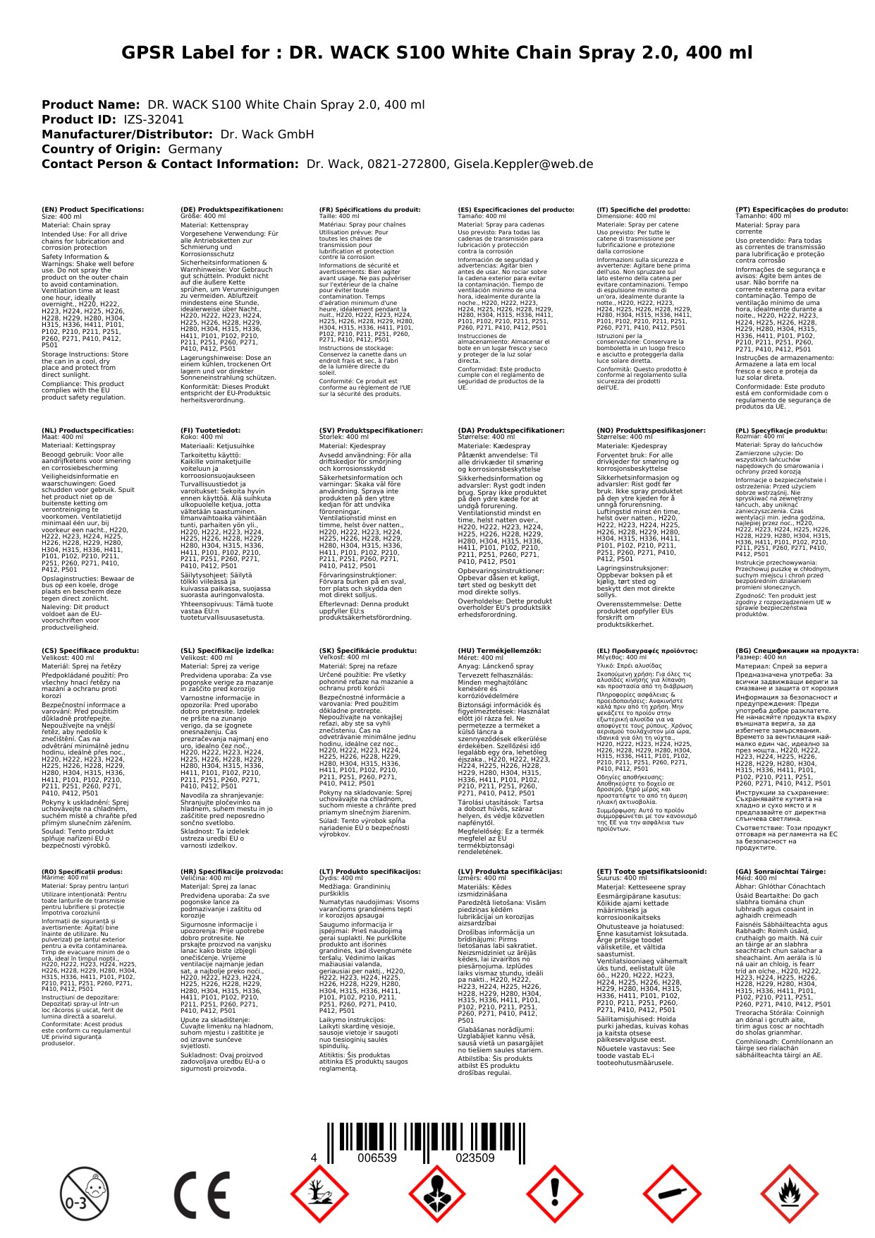 Sprae slabhra rothar, Bealadh slabhra rothair, Sprae bán slabhra, 400 ml