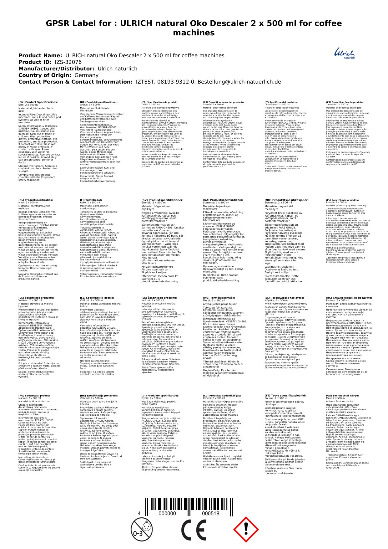 Cinntíonn ár ndíscálaitheoir caife nádúrtha glanadh éifeachtach agus sábháilte do do mheaisín caife. Leis an bhformáid áisiúil 2 x 500ml, tá go leor agat le haghaidh úsáidí iolracha. Tá sé deartha go speisialta le haghaidh meaisíní caife uathoibríocha agus tá sé bunaithe ar fhoirmle éiceolaíoch. Cén fáth a bhfuil sé seo tábhachtach duit: Faigheann tú táirge a chosnaíonn do mheaisín agus a chothaíonn timpeallacht níos glaine.