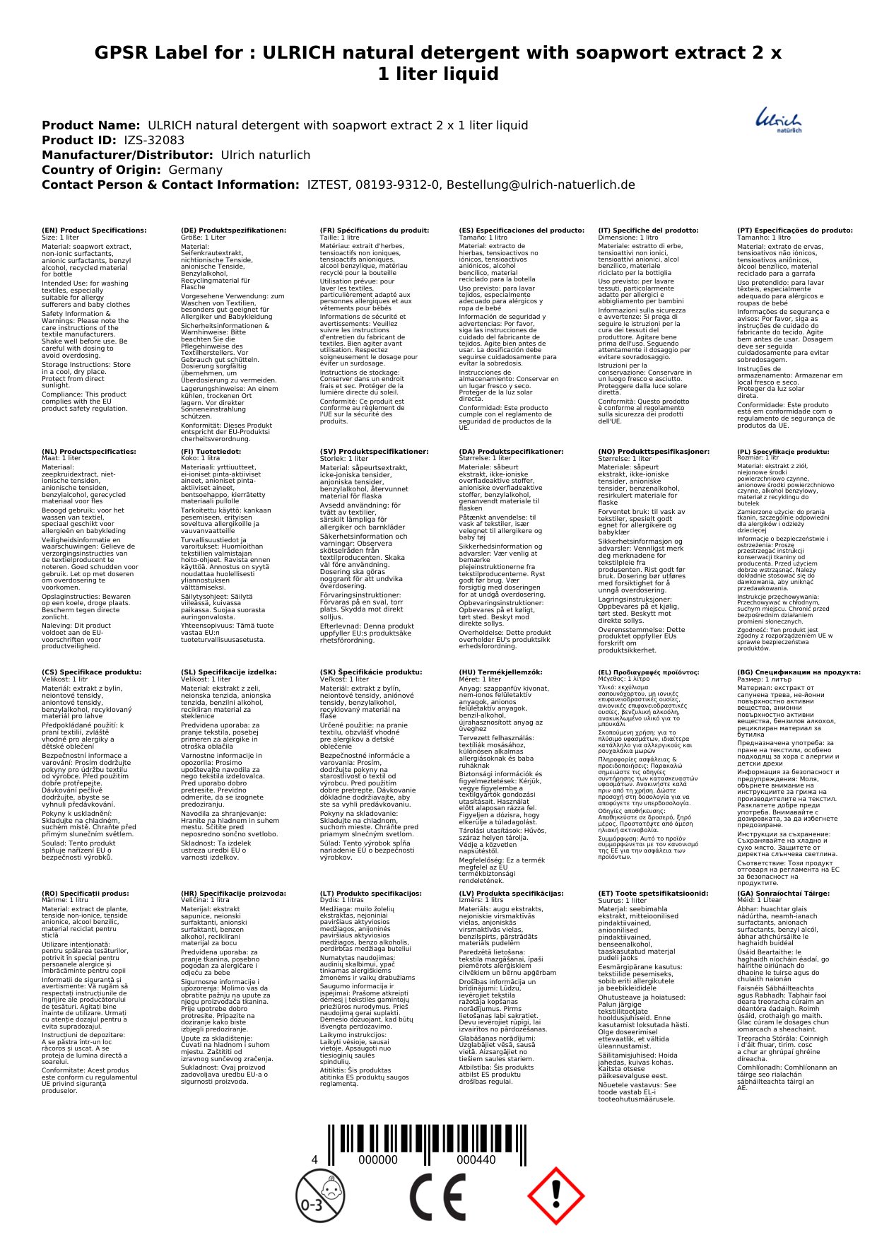 Glantach níocháin leachtach 2 L, níochán éadaí nádúrtha, sliocht gallán féir