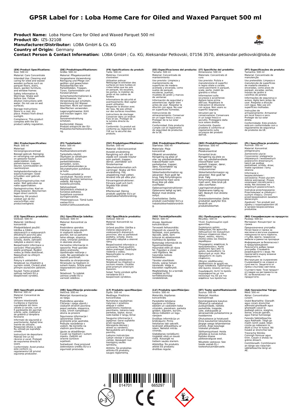 Tá ár gcúram páircéad ola deartha chun do urlár a chosaint agus a ghlanadh go héifeachtach. Leis an bhfoirmle speisialta seo, gheobhaidh tú dromchla glan agus cosanta. Tá sé seo tábhachtach duit mar go gcoinníonn sé cuma nua ar do urlár ar feadh i bhfad. Tá an táirge seo oiriúnach le haghaidh páircéad adhmaid ola agus céirithe.