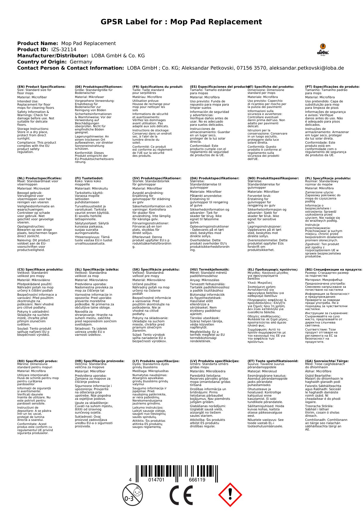 Tá an Pad Mop Athsholáthair deartha chun oibriú le mopanna urláir le pads so-athsholáthair. Seiceáil toisí an mhop le do thoil chun a chinntiú go n-oireann sé.