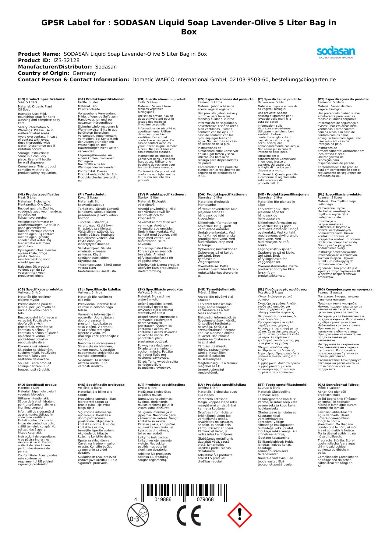 Cuir ceist chun níos mó a fhoghlaim faoin táirgeGallúnach Leachtach 5 Lítear, Lavendair agus Olive Gallúnach, Gallúnach Nádúrtha