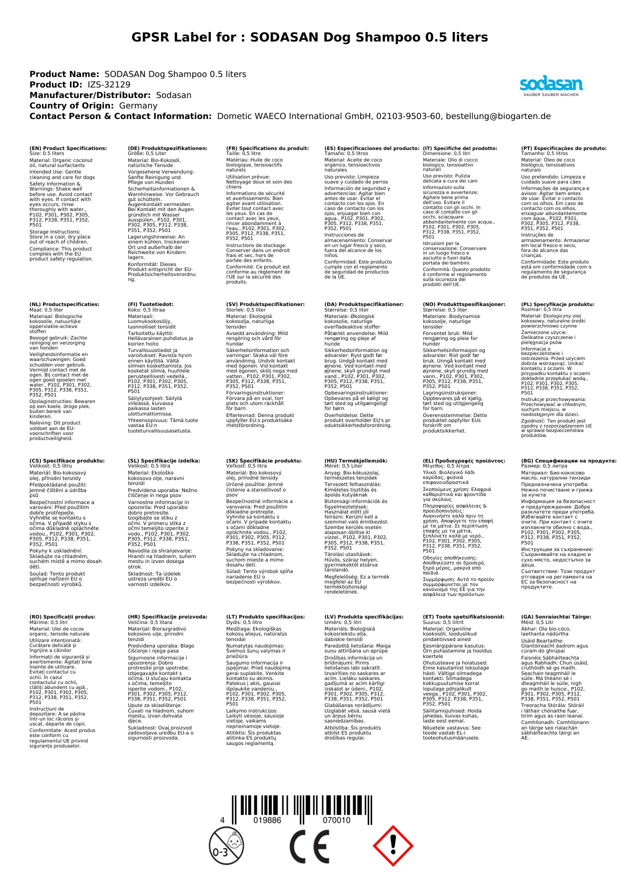 Seampú madraí 0,5L, seampú orgánach madraí, cúram madraí